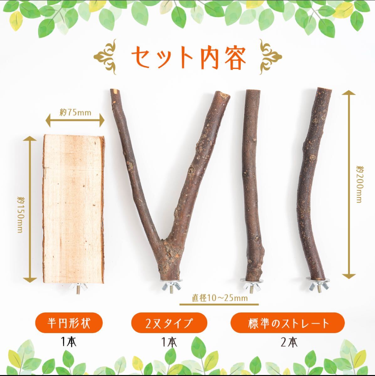 ・止まり台、二股止まり木、止まり木×2本のセットです