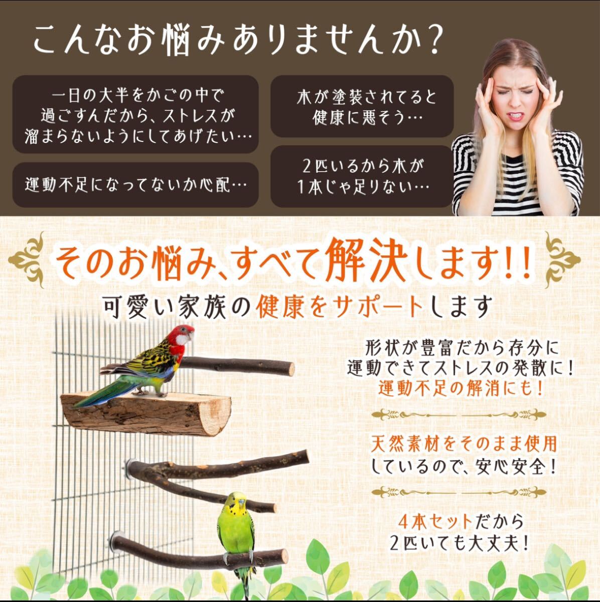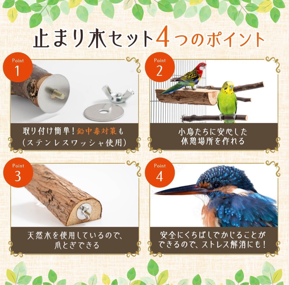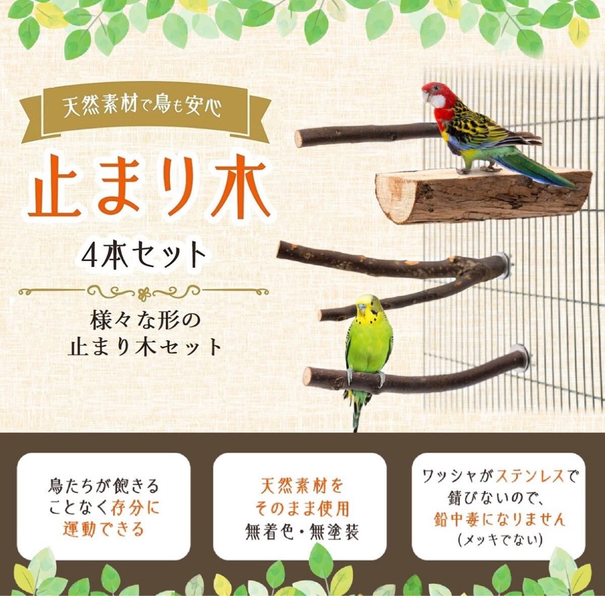・インコなどの小型の鳥や中型の鳥用の止まり木4本セットです