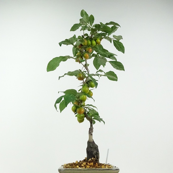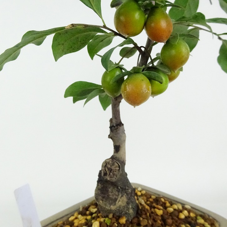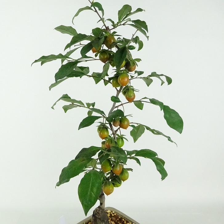 ■植物ですので撮影時期や季節によって剪定などの手入れにより写真から変化がございます。撮影日をご確認のうえ、ご注文ください。 ■翌年の実付きをよくするために葉が落ちた後の11月末~12月にかけて摘果しています。お届けの商品にはロウヤガキの実がない場合がございます。 ■老爺柿の種類は沢山あり、品種の記載がない商品は仕入れの時点で確認ができておりませんので、その旨ご了承のほどお願いいたします。 【老爺柿盆栽】 開花時期は4~5月頃に花を咲かせます。雌雄異株で、実を成らすためには雌木と雄木が必要になります。小さな実が成る渋柿で、実が枝にぶら下がって成る特徴があります。老爺柿は沢山の品種があり、実の形状や色も様々で、丸い形から細長くとがったもの、大きさも大小があり、色合いも赤みを帯びた橙色から黄色、朱赤など豊富にあります。 |