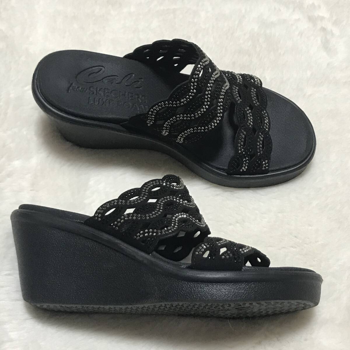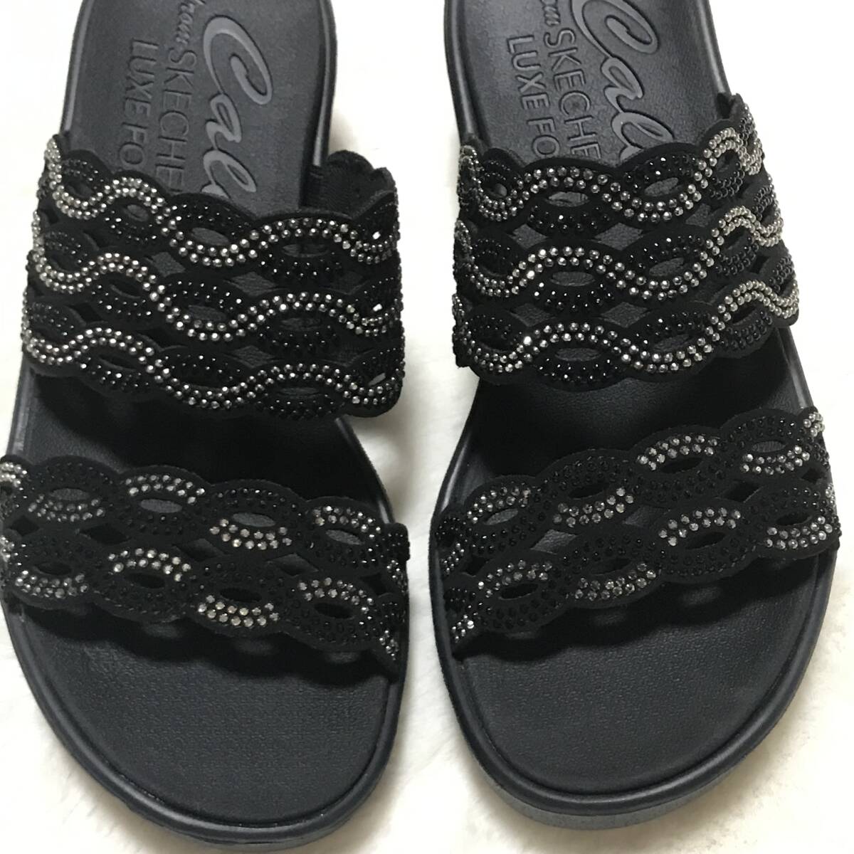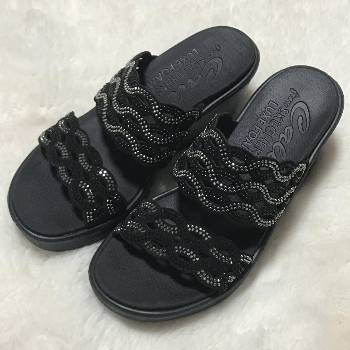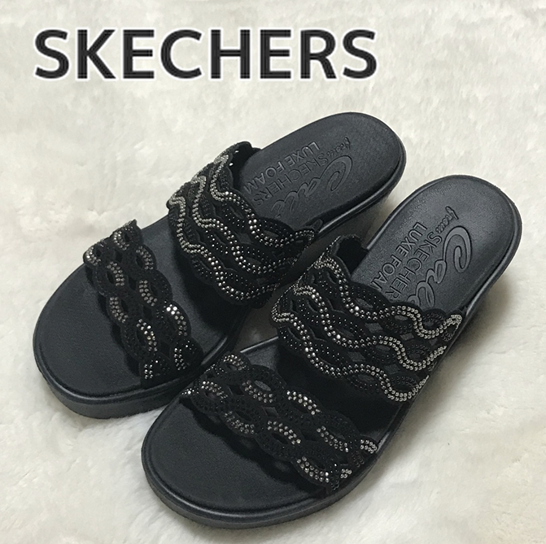 スケッチャーズ Skechers サンダル ハイヒール レディース 靴 ミュール 厚底 ラインストーン ブラック