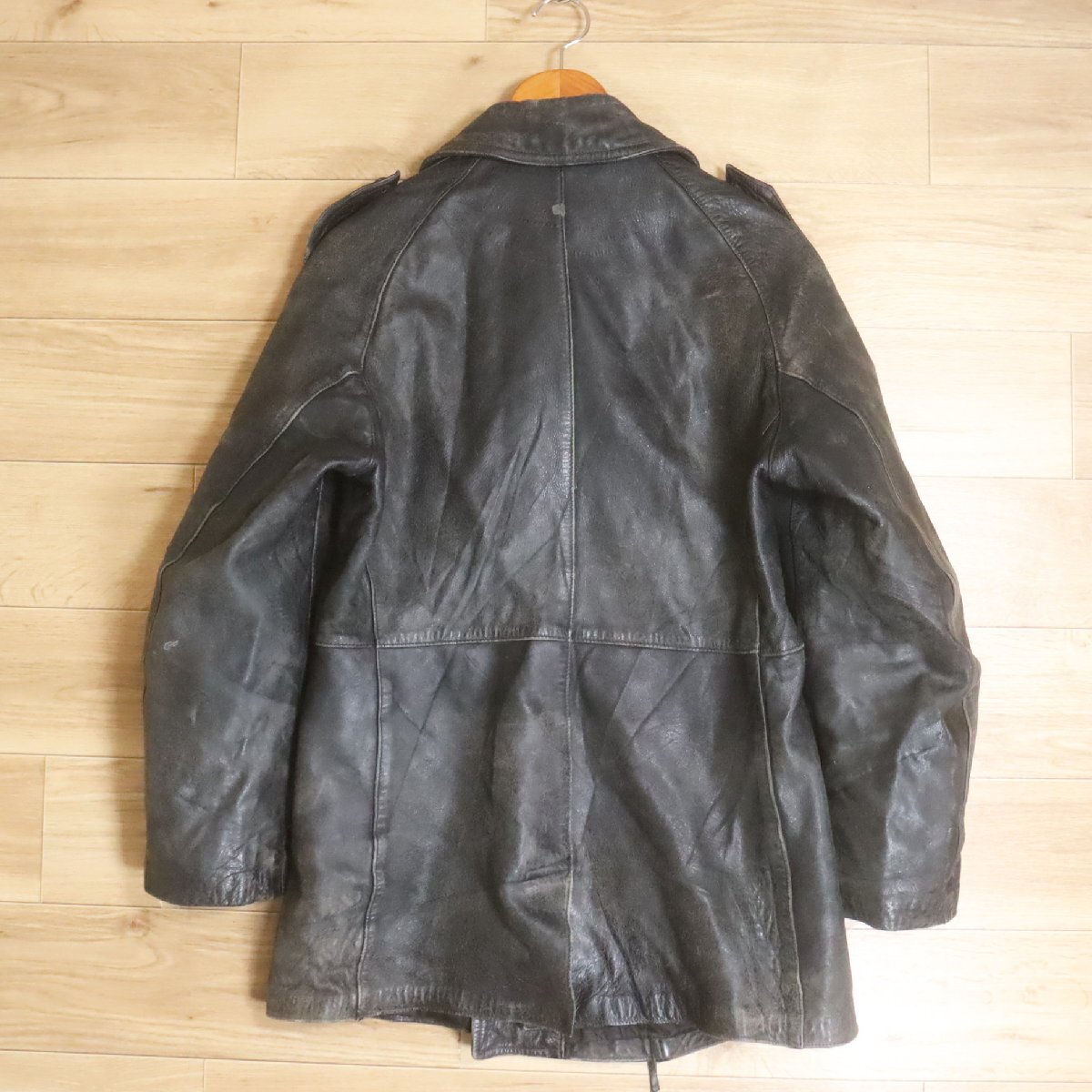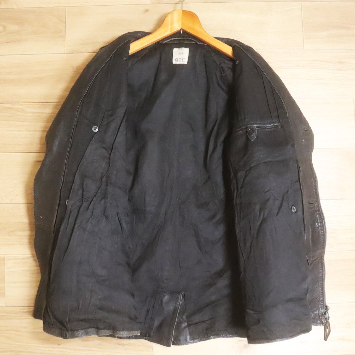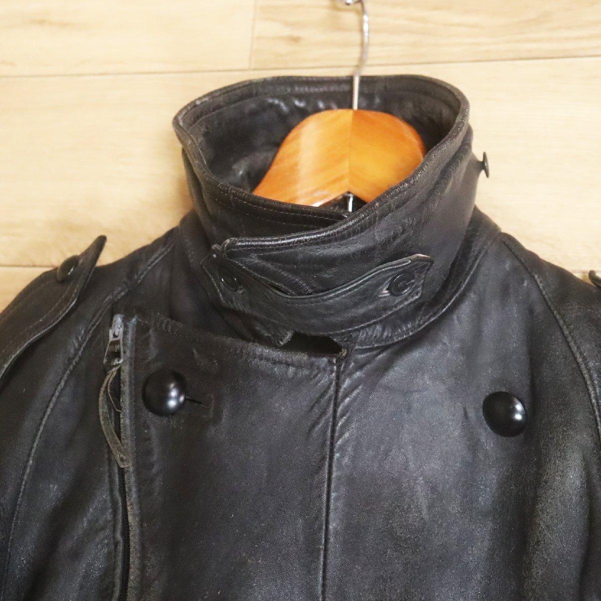 I8S/R6.24-2 80s ビンテージ フランス軍 モーターサイクルコート 本革 レザージャケット レザーコート 92C ユーロヴィンテージ