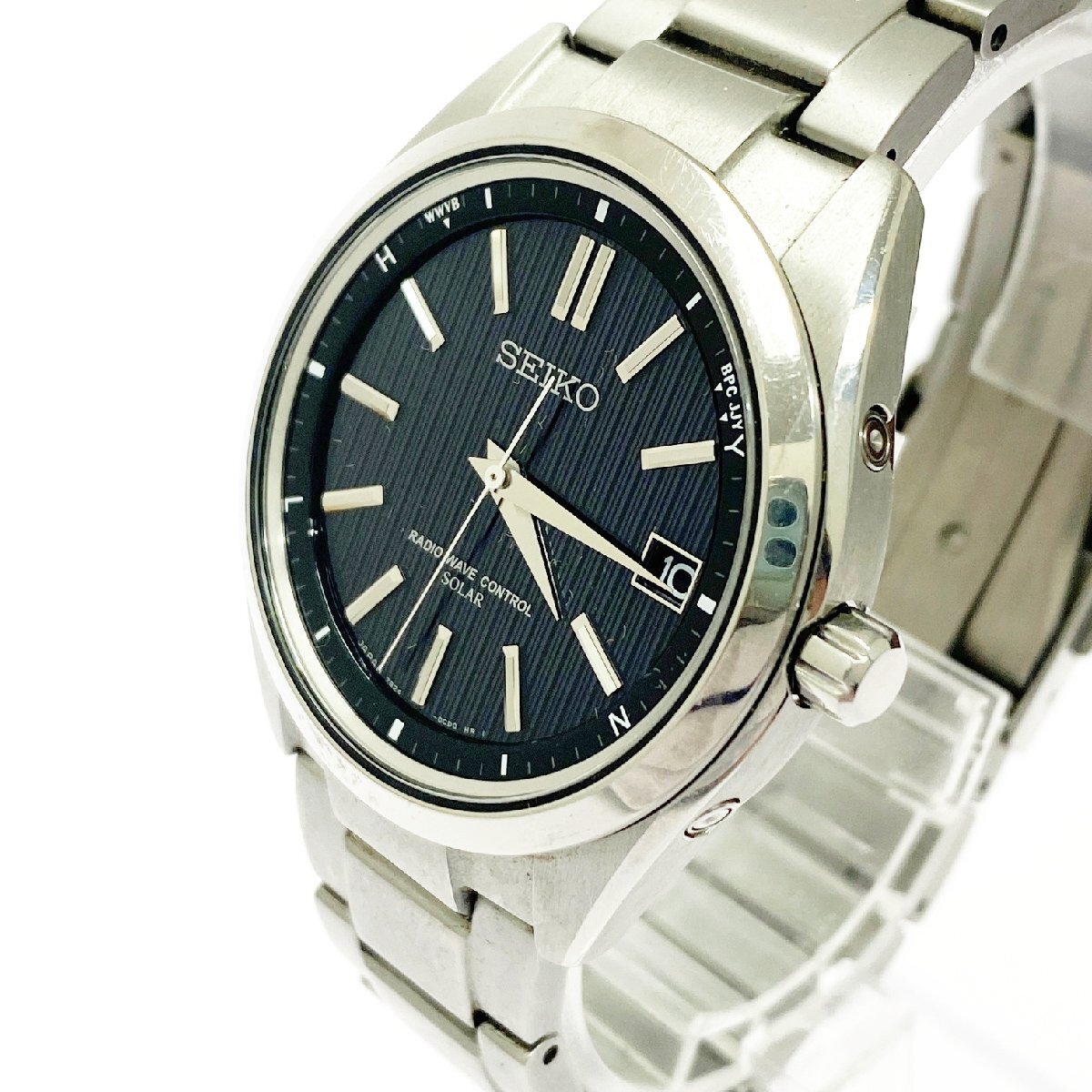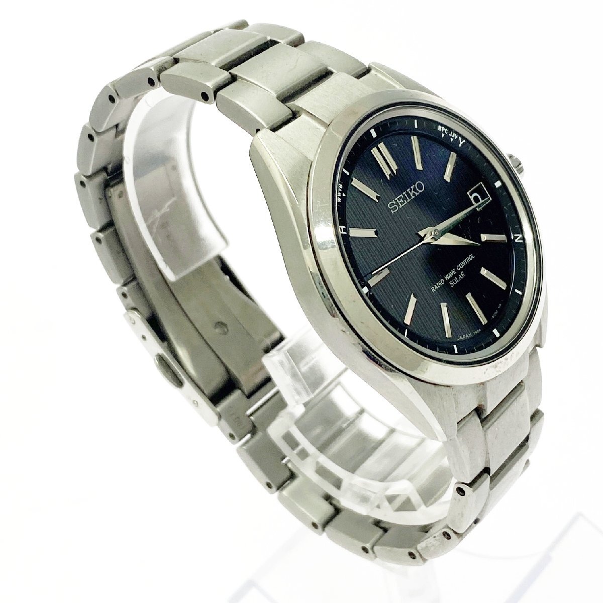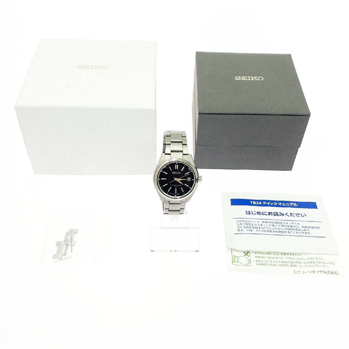 【1円スタート】【箱付き】SEIKO セイコー 7B24-0BH0 チタン ブラック系文字盤 電波ソーラー メンズ腕時計 487011