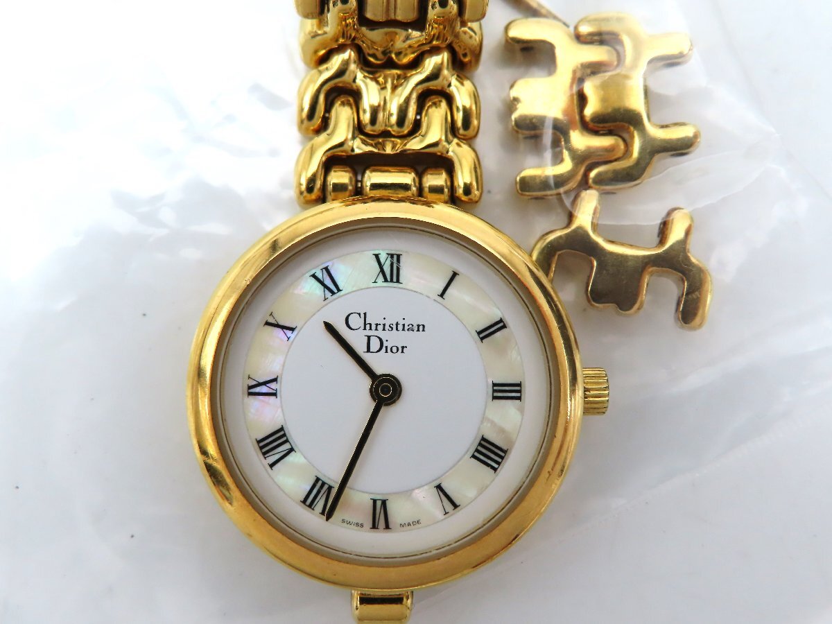 1円 クリスチャンディオール 3027 GP シェル文字盤 レディース 稼働 QZ コマ 26425 LB