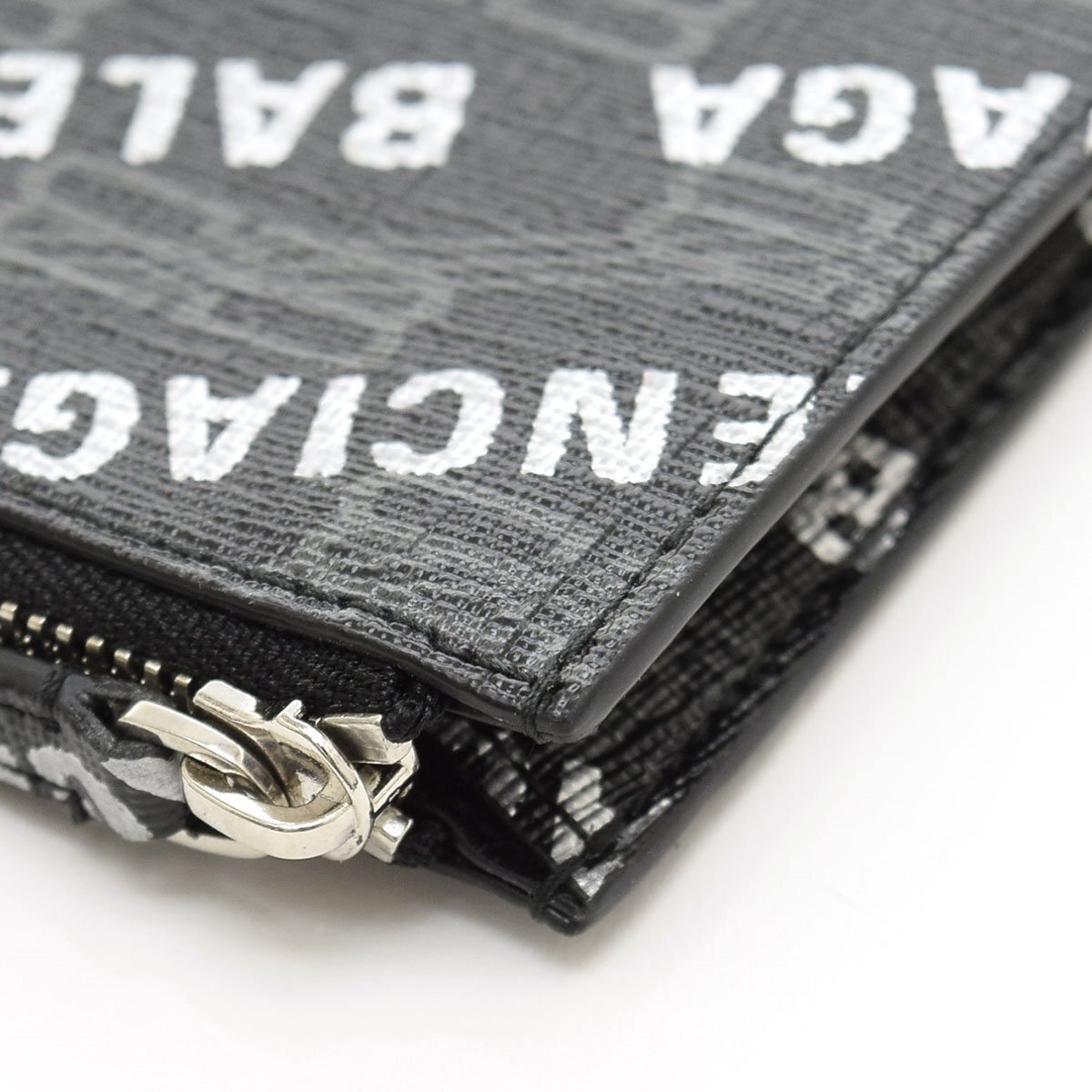 □536125 BALENCIAGA バレンシアガ カードケース ロゴプリント ロング コイン&カードホルダー ブラック