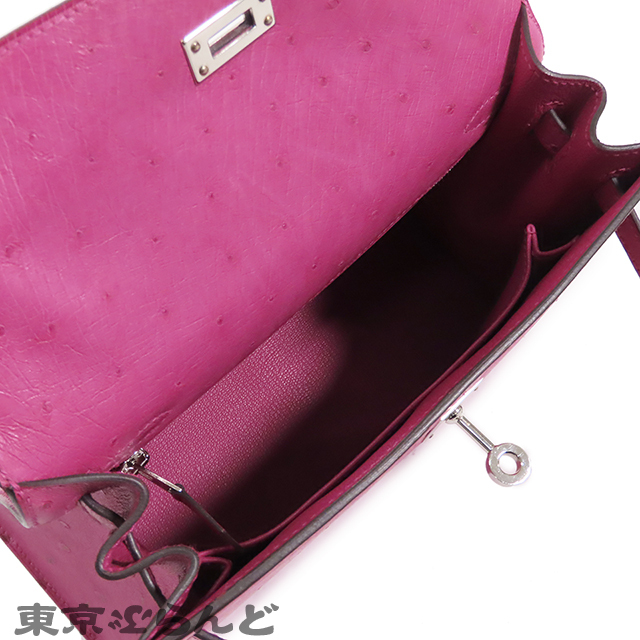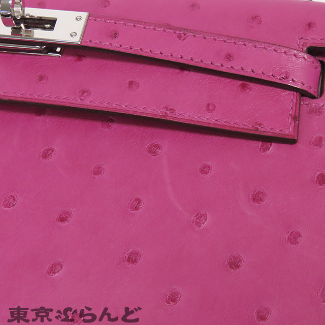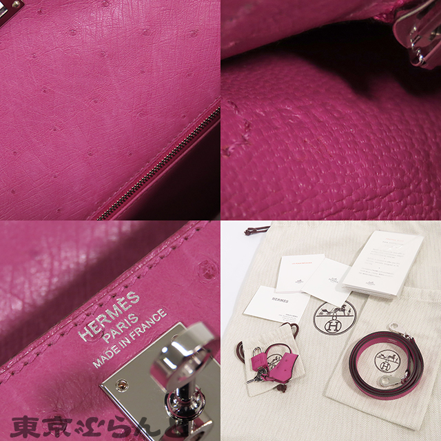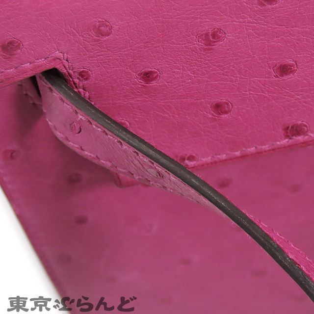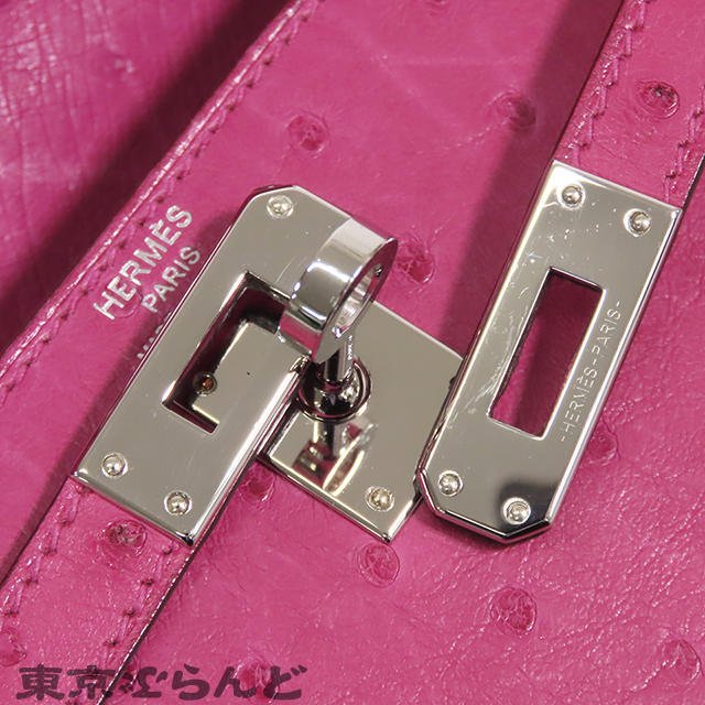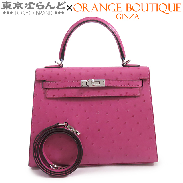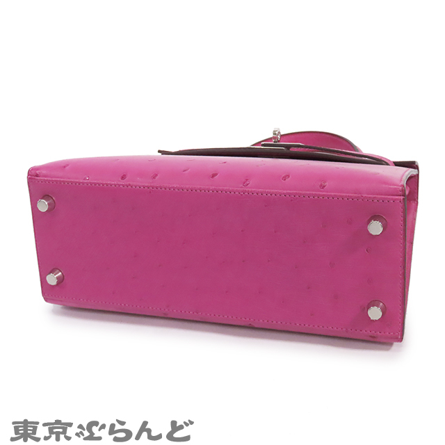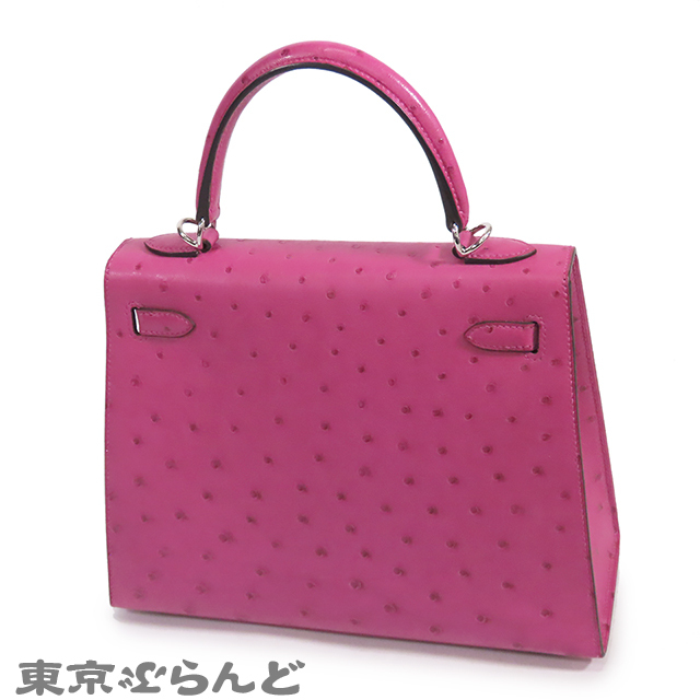 101777970 エルメス ケリー 25 Y刻印 ローズパープル シルバー金具 オーストリッチ 外縫 2WAY ハンドバッグ ショルダーバッグ レディース