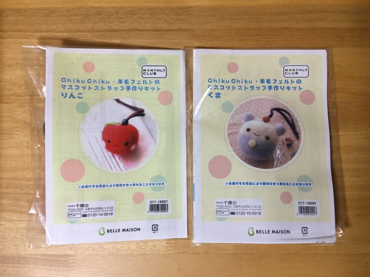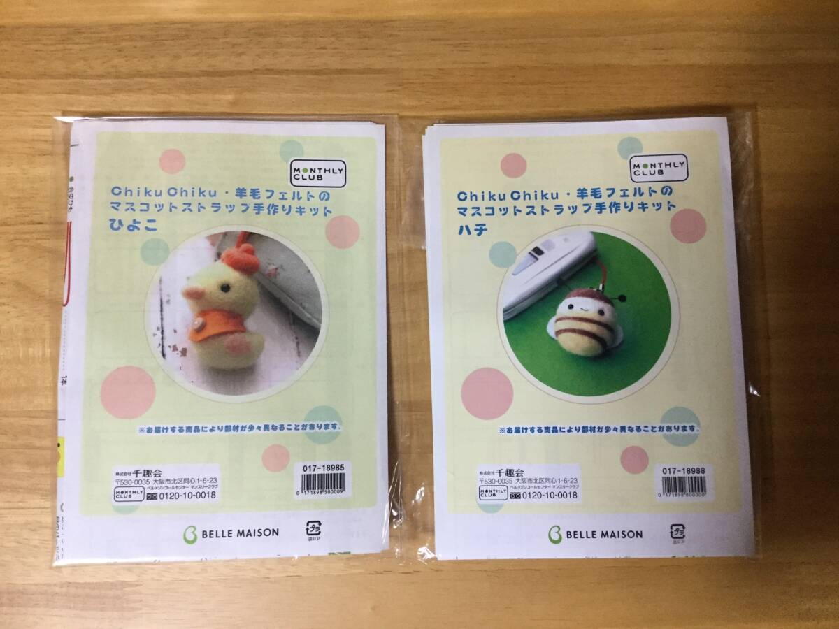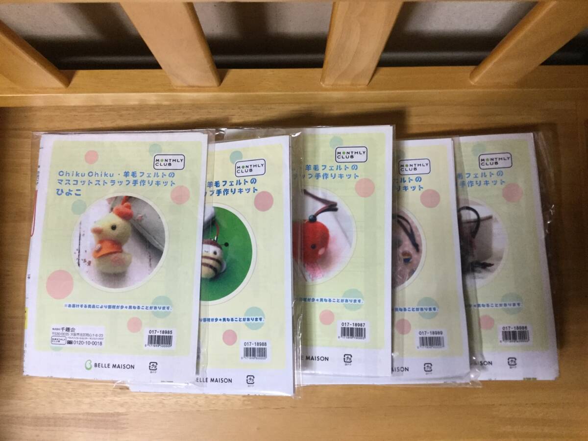 千趣会/ベルメゾンのマンスリークラブで購入した「Chiku Chiku・羊毛フエルトのマスコットストラップ手作りキット」5種をセットで出品します。レシピ付きです。いかがでしょうか。