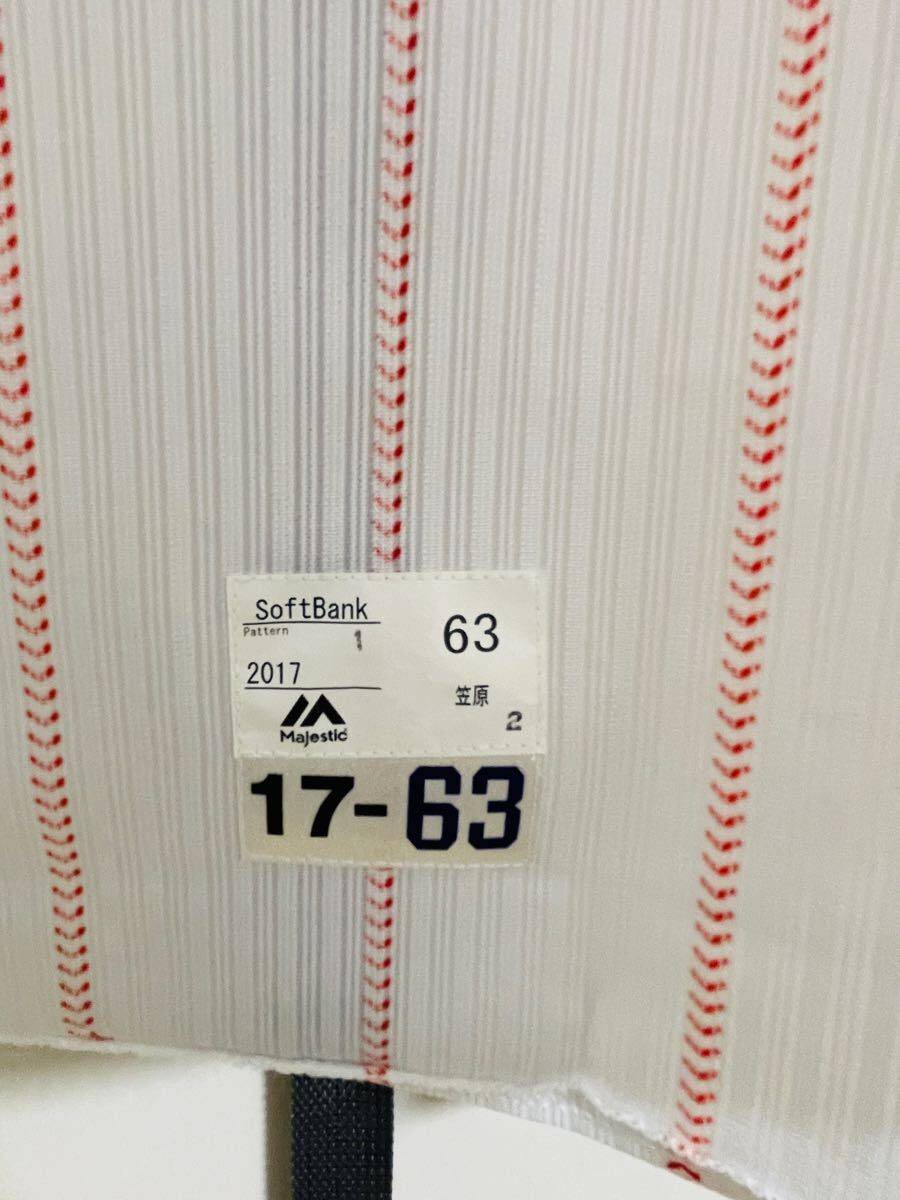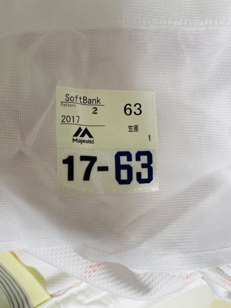 福岡ソフトバンクホークス、笠原大芽、背番号63、2017年鷹の祭典、実使用上下ユニフォームです。