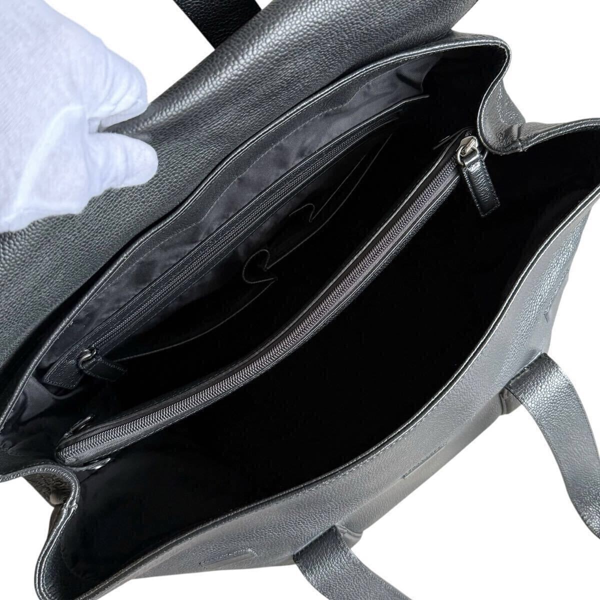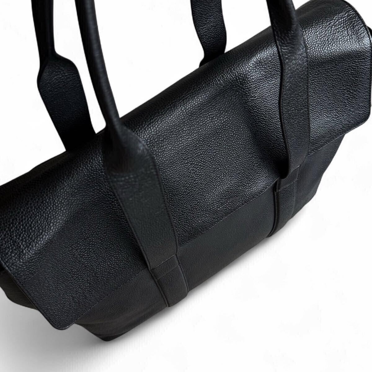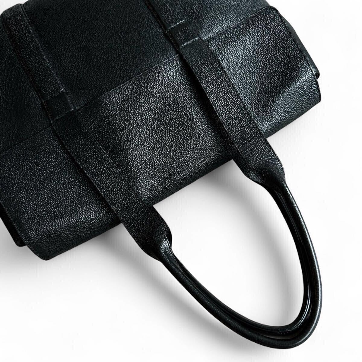 上質な本革(カウレザー)を贅沢に使用したシボレザー仕立ては、しっとりとした質感と上品な艶を放ち、持つ人のスタイルを一段と格上げしてくれます。深みのあるブラックカラーがビジネスシーンに溶け込みつつも、存在感をしっかりと主張。フロントに控えめに型押しされたブランドロゴが、シンプルながらも確かな品格を演出します。
