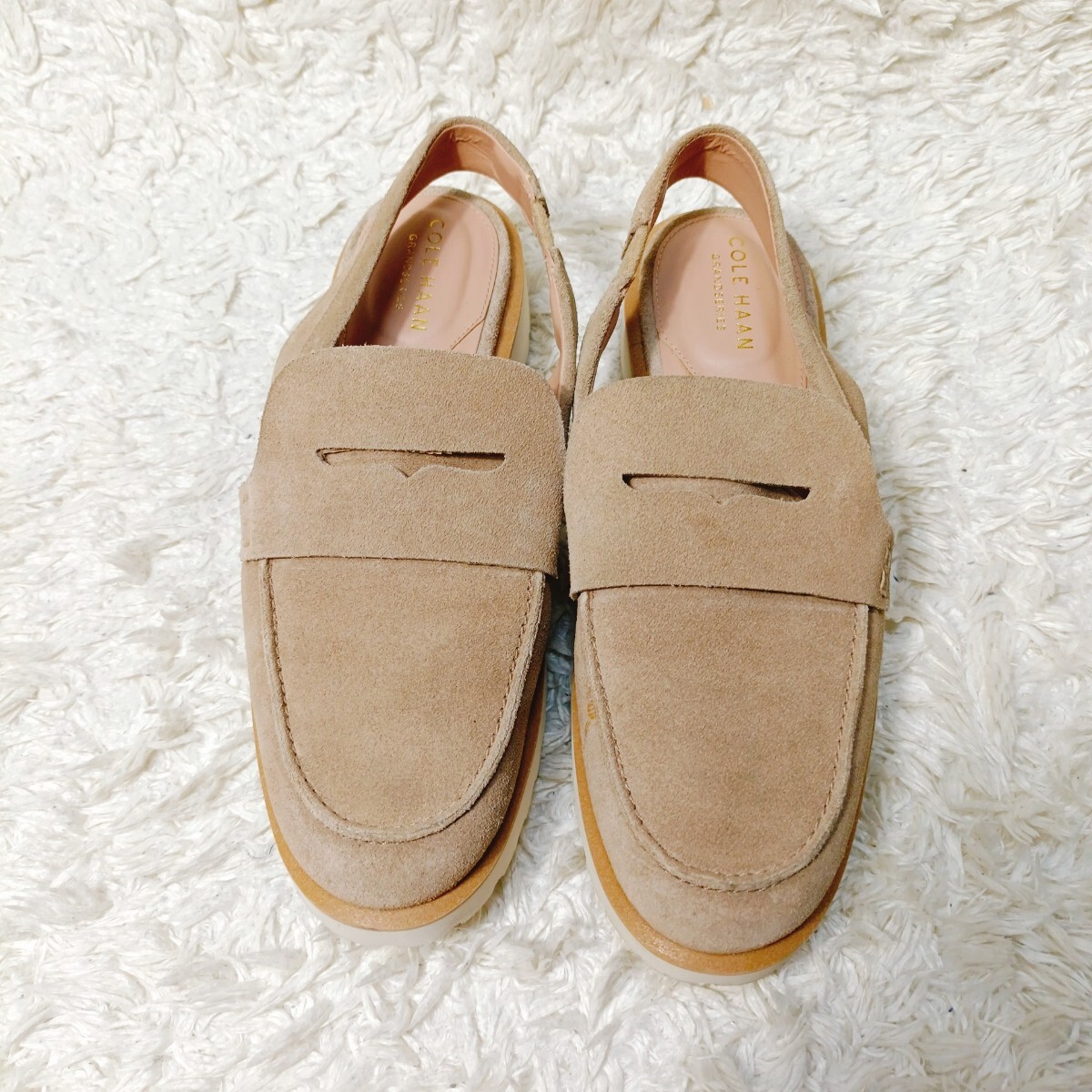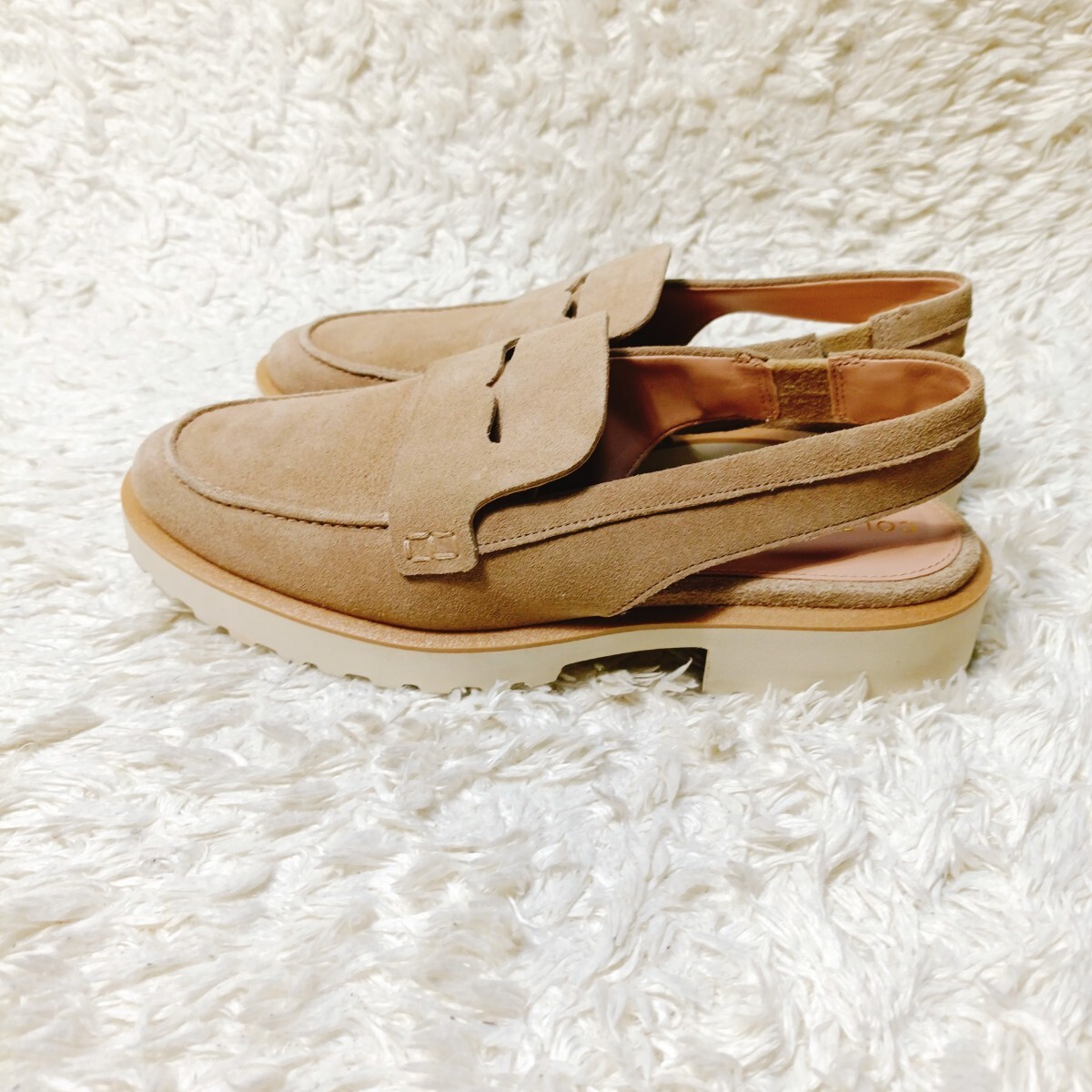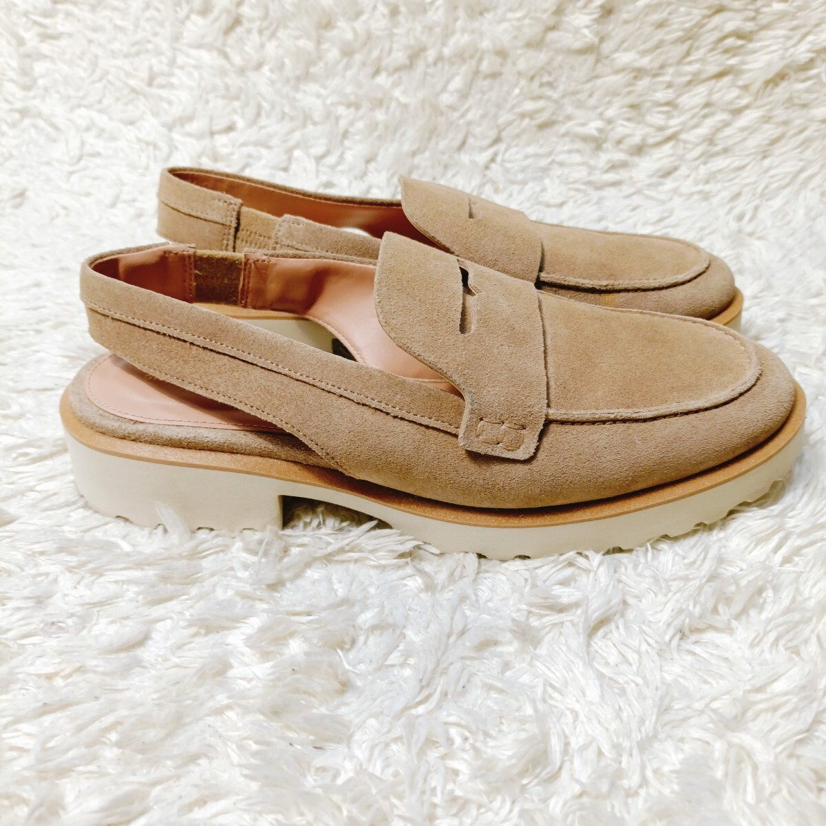 スエード素材とラバーソールにより、快適な履き心地を提供します。スリングバックスタイルで