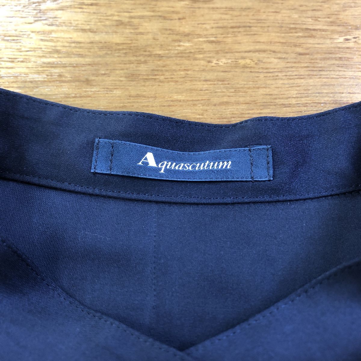 こちらアクアスキュータムの長袖フリルブラウスです。