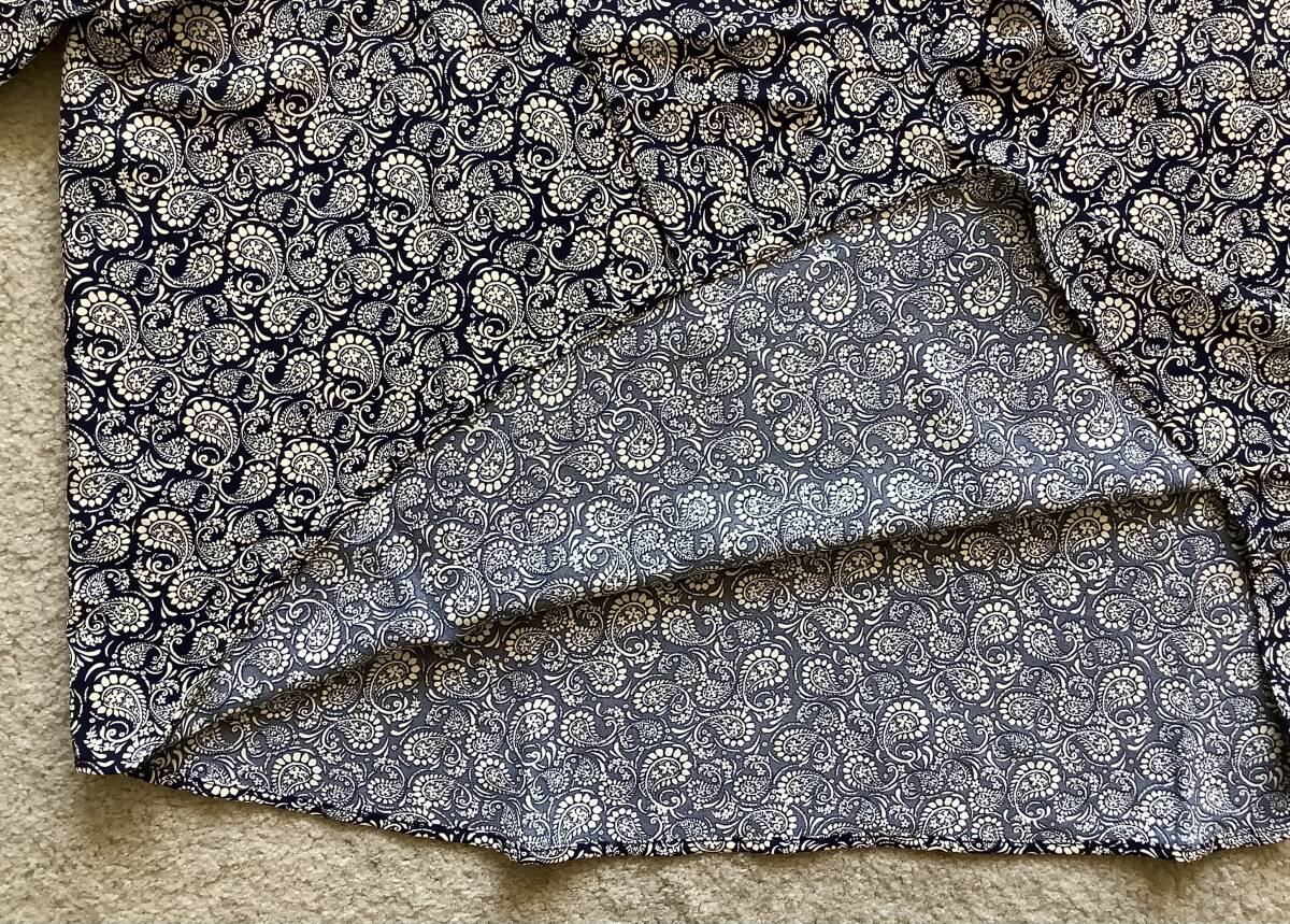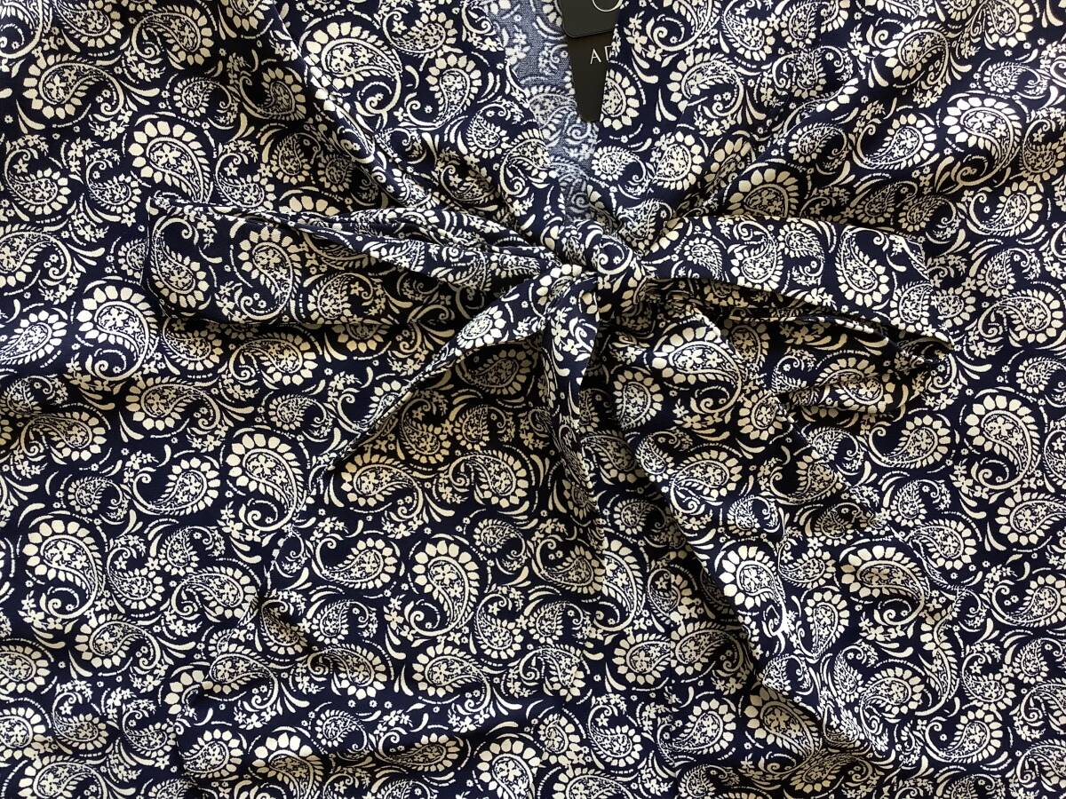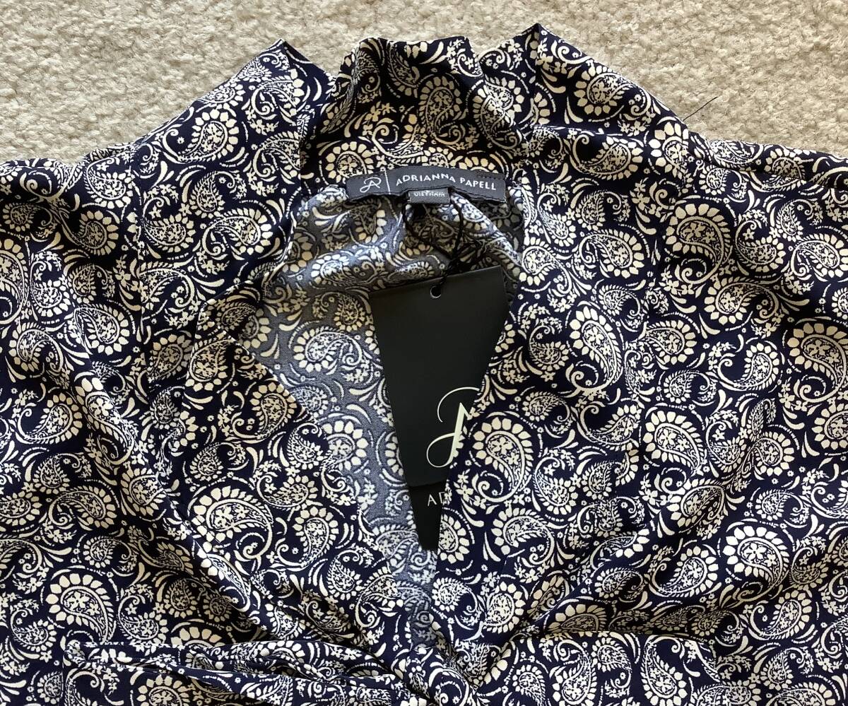 ADRIANNA PAPELLアドリアナパペル新品XL♪ボウタイネック紺白ペイズリー柄シルキーな肌触りのエレガントな長袖ブラウス
