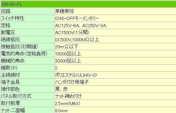 ■サトーパーツ SW-80押しスイッチ AC125V・6A (AC250V・3A)