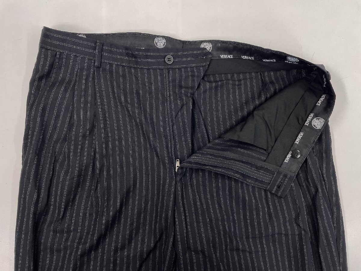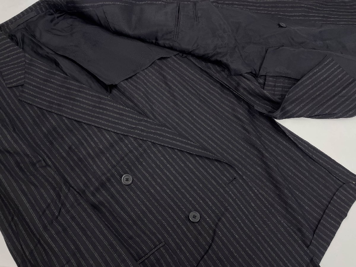 超美品【ジャンニヴェルサーチクチュール】25WTVA ダブル4ボタン ストライプ織柄 スーツ (メンズ) 54/8R ブラック イタリア製◇35RMS2646◇