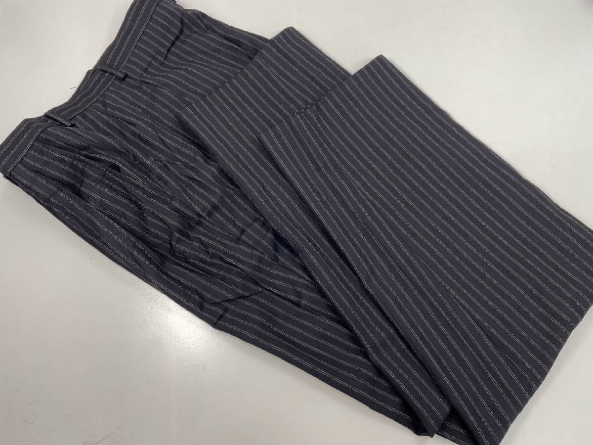 ・スラックス・・・ウエスト実寸約92センチ(1センチ出し、4センチ詰め可能)、股上約29センチ、渡り幅約38センチ、股下約84センチ、総丈約112センチ、裾幅約22センチ、シングル仕上げ(最大でプラス5センチ長くできます)