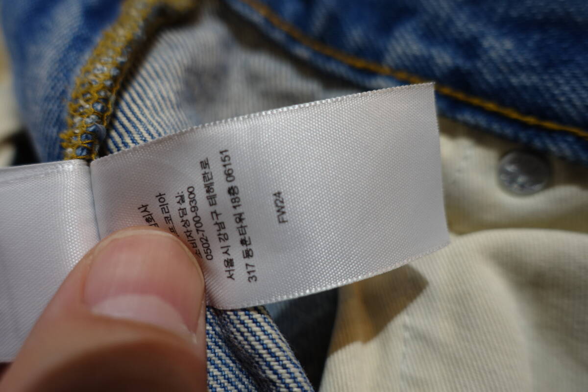 かるく使用しただけで、USEDではありますが特に気になるダメージはありません。良い状態です。24AW品で原宿のシュプリームで購入しています。サイズは34 ウエスト平置きで47 股下79 股上34 裾幅23.5 よろしくお願いします!