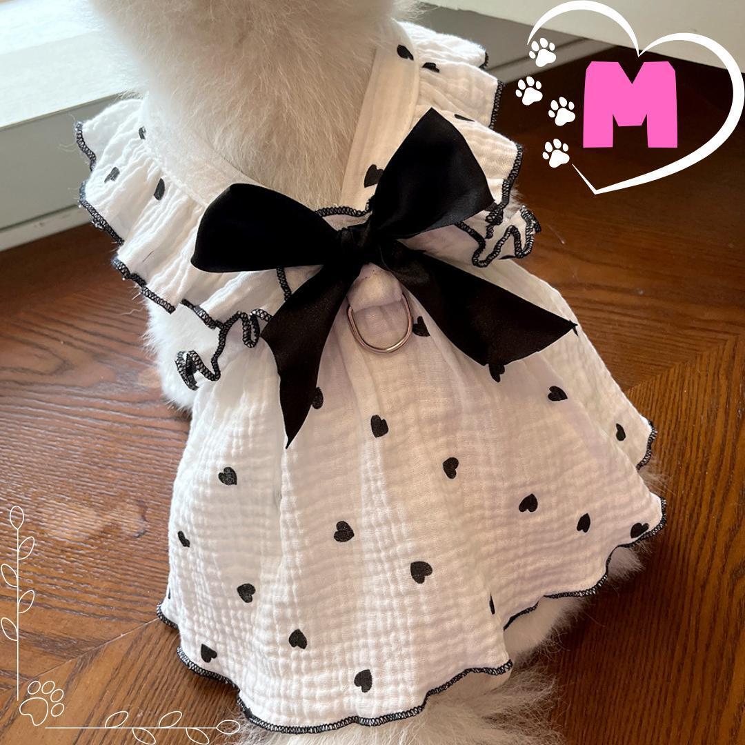 ブラックハート柄が可愛い 春夏用ペットワンピース(Mサイズ)
