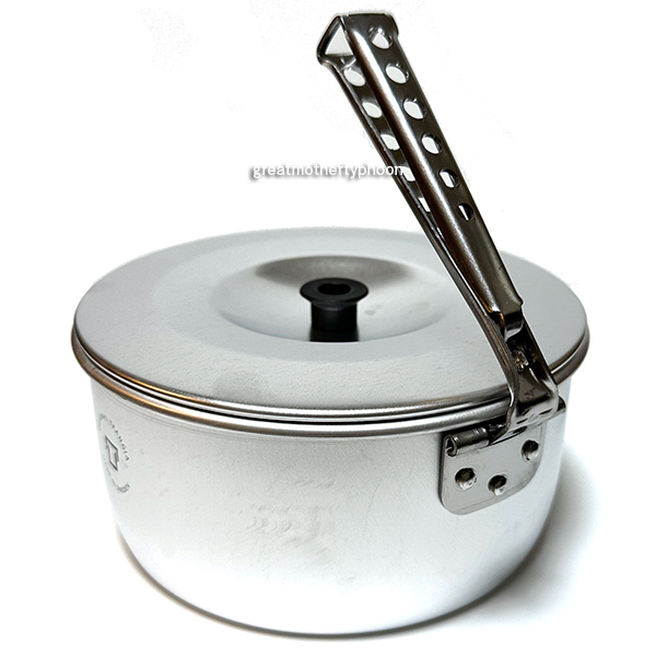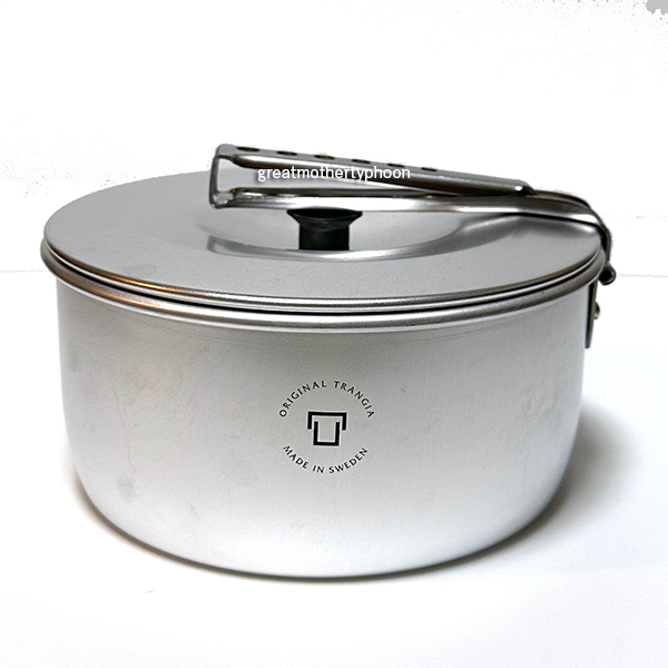 トランギアのソースパン1.5Lグリップハンドルタイプです。ビリーコッヘルTR612410を1.5Lに拡張し、ベイルハンドルではなくグリップハンドルに換装された商品とお考え下さい。ボディにある円形のマークは下から0.5L、1.0Lを指し示しています。リッドのつまみはプラです。商品重量240g、ボディ直径17.0cm、高さ8.0cmです。