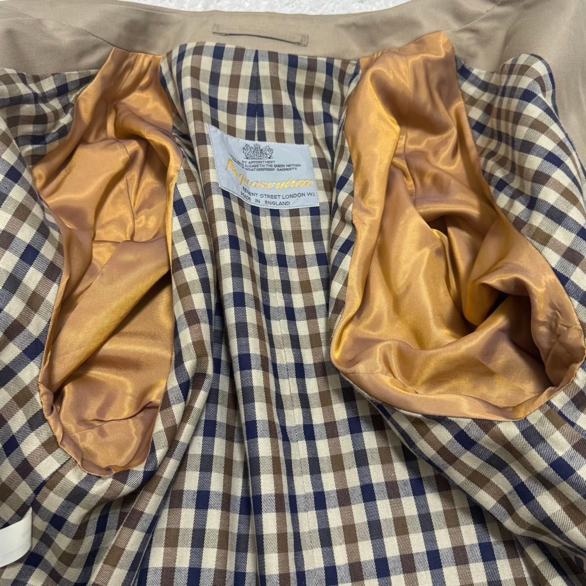 Aquascutum アクアスキュータム ステンカラーコート トレンチコート ベージュ beige チェック 34 メンズ レディース ユニセックス 極 美品