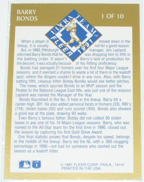 品名 | ★*FLEER 1991/ULTRA TEAM* BARRY BONDS(1 OF 10) ★未使用品ですが、痛みなどが多少ございます。 細かいことを気にになさる方のご入札をお断りいたします。 ★未使用のため、万が一、破損・不良品の場合、こちらでの責任は負いかねます。 |