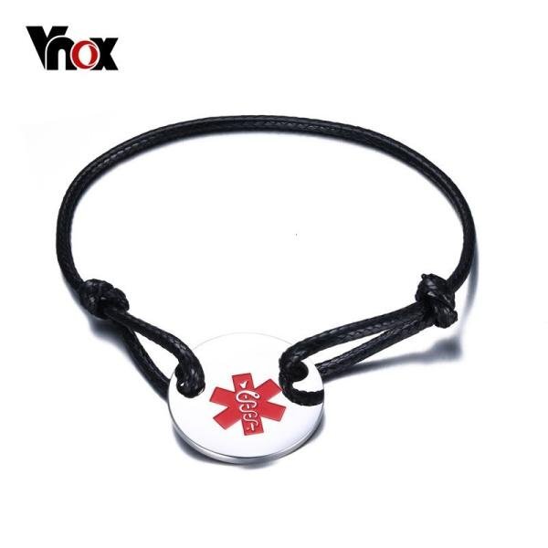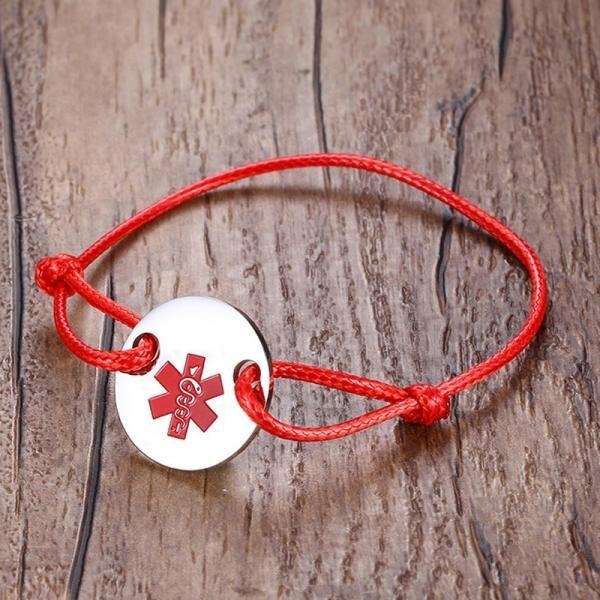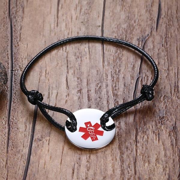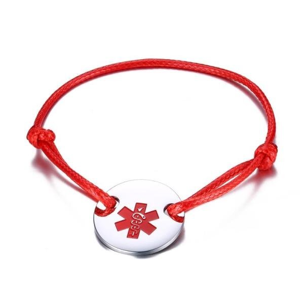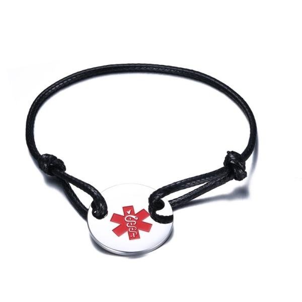メディカル アラート 星 スター ライフ ブレスレット ステンレス コイン ブラック 赤 レッド ロープ バングル フリーサイズ サイズ 5.51 刻印
