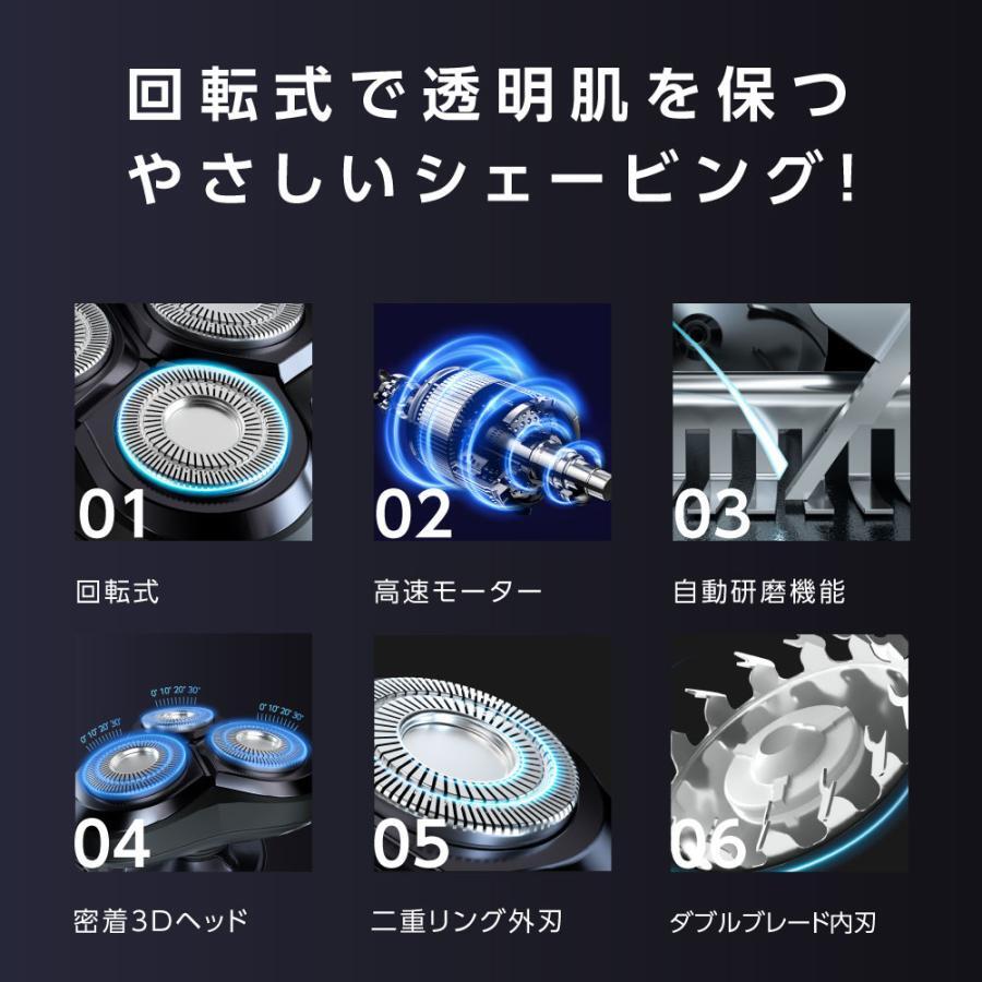 メンズシェーバー 髭剃り シェーバー 電動 3枚刃 男性 丸洗い可能 USB充電式 回転式 防水 電気シェーバー xr-txd01-gy グレー