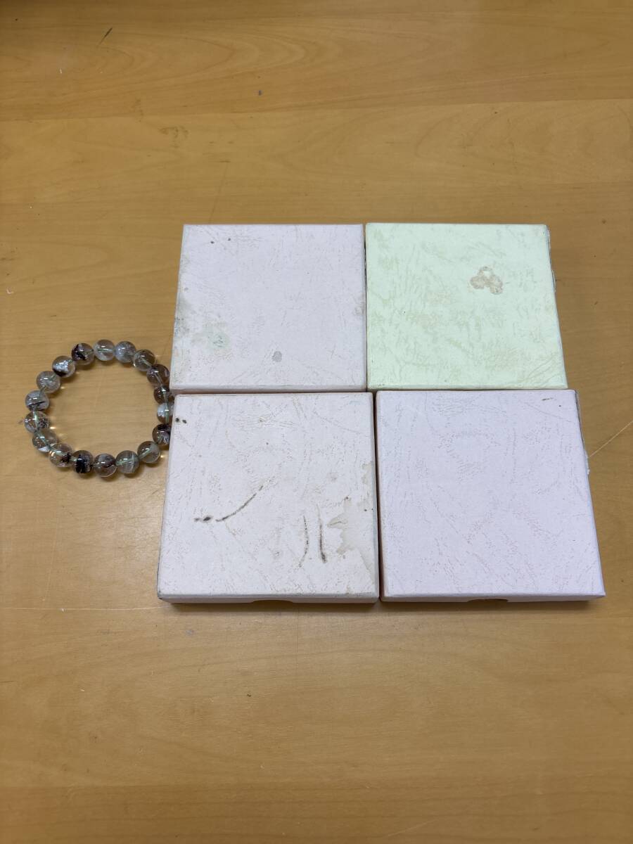 外箱には一部汚れや擦れがありますが、数珠本体はいずれも目立った傷や汚れはなく、全体的に綺麗な状態です。
