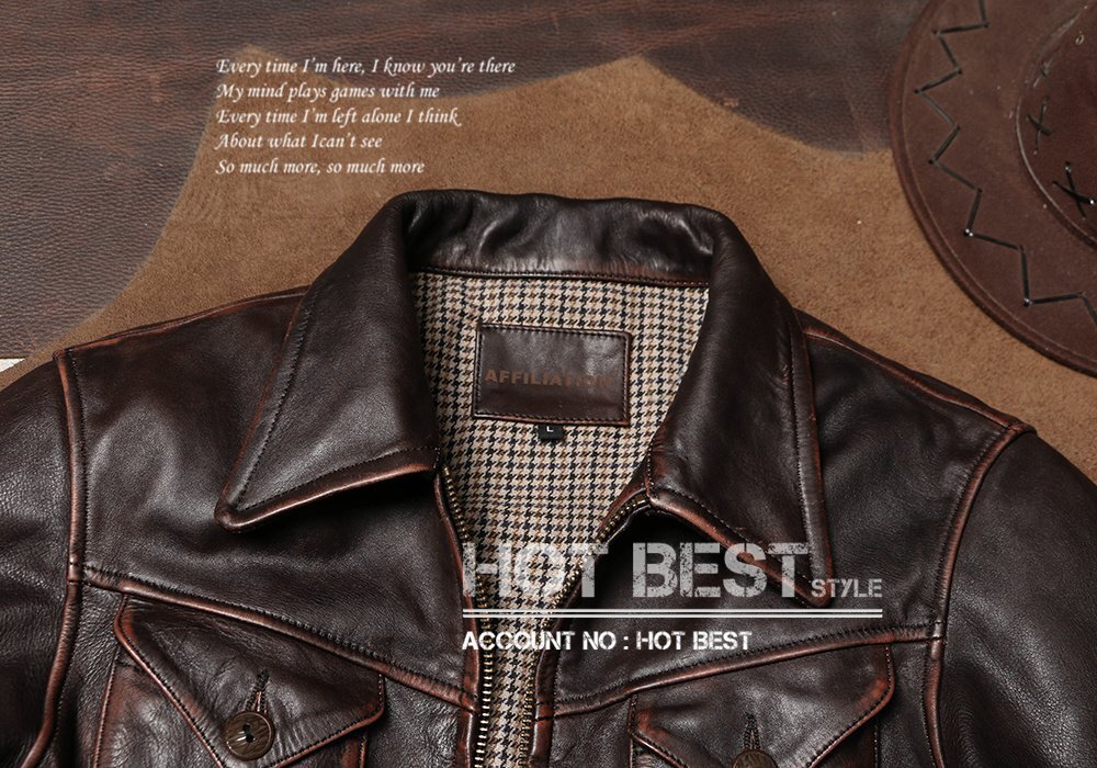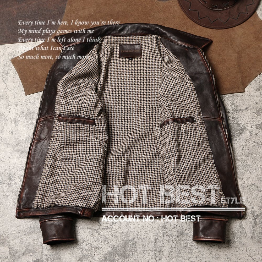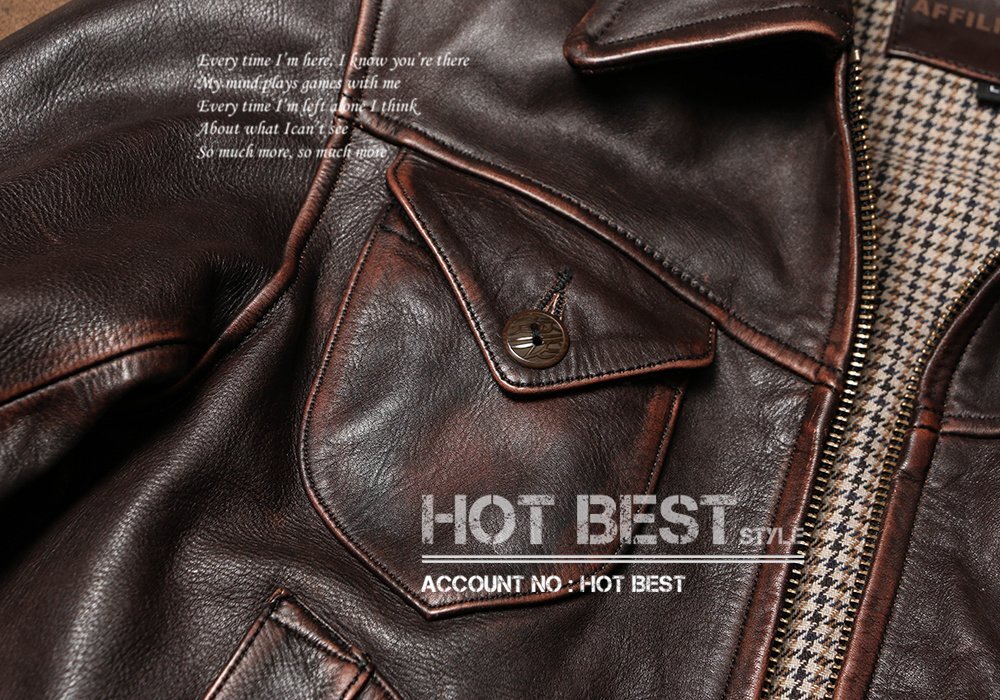 1.3mm 茶芯カウハイド 復刻40's アビエイタースタイル レザージャケット メンズ 革ジャン ウォッシュ加工 ヴィンテージ 牛革 Y1576/5XL