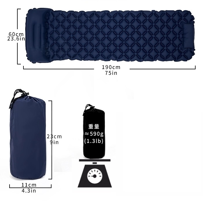 新品 最新エアマット 大型 ULTRALIGHT SLEEPING MAT 収納時超軽量小型 小型折りたたみクッション付き 黒