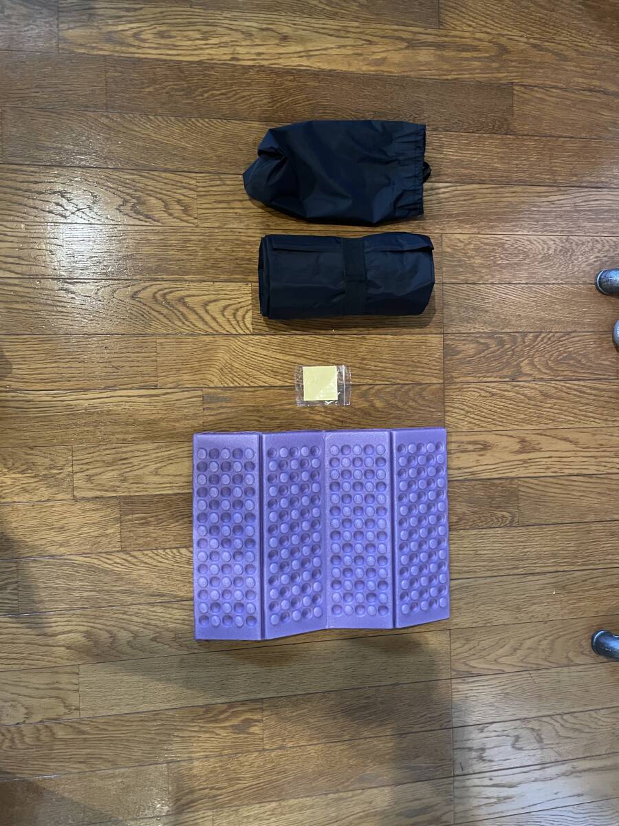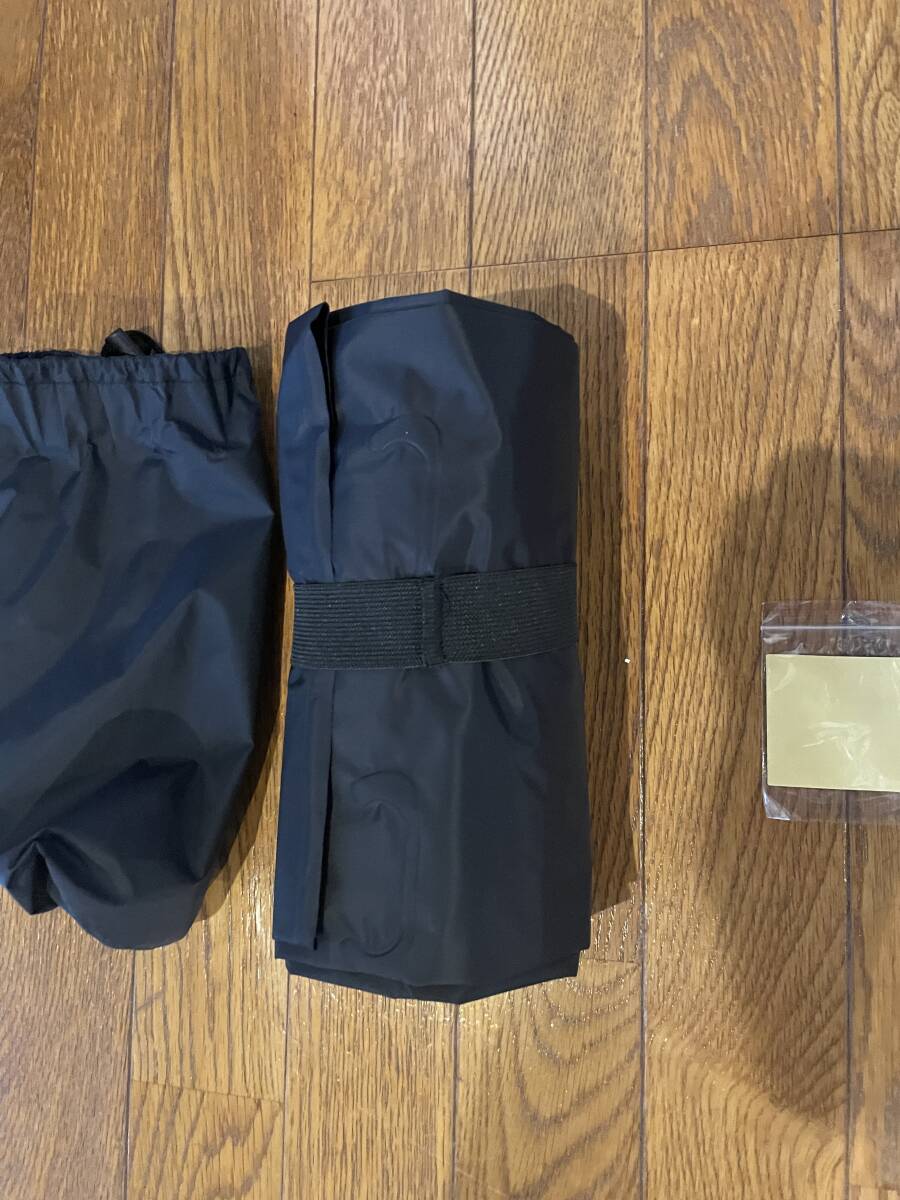 本体+収納袋+万が一穴が開いた際の補修パッチ+おまけの折り畳みクッションが出品物です。