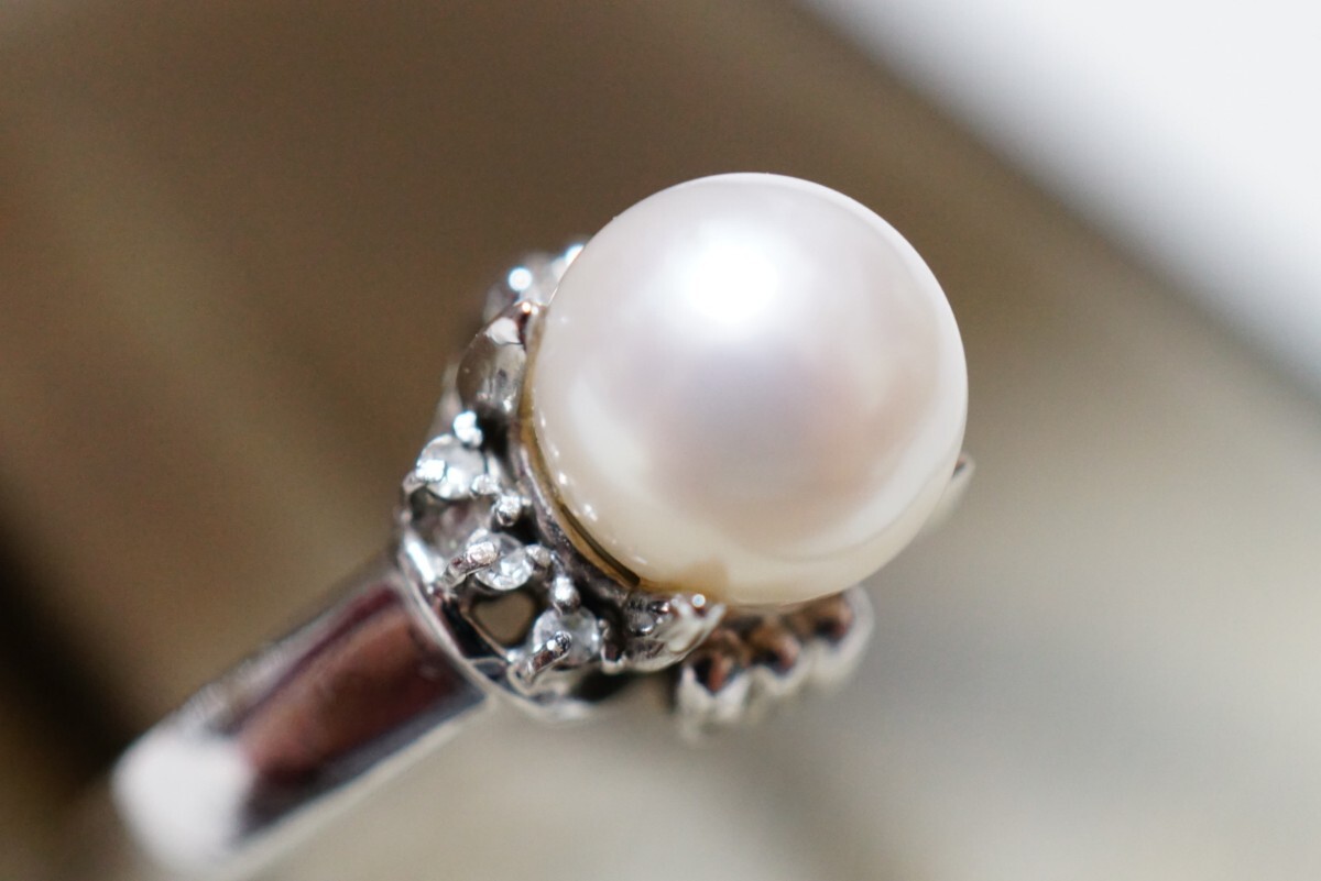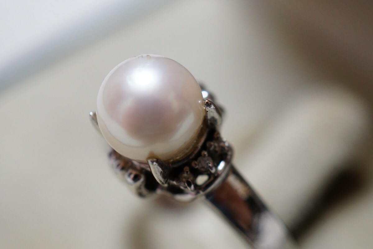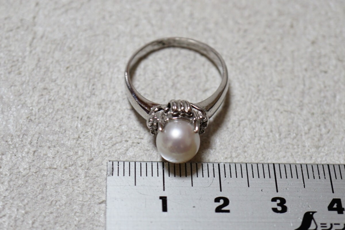 992 アコヤ真珠 天然ダイヤモンド シルバー リング 指輪 ヴィンテージ アクセサリー SILVER刻印 本真珠 パール シルバージュエリー