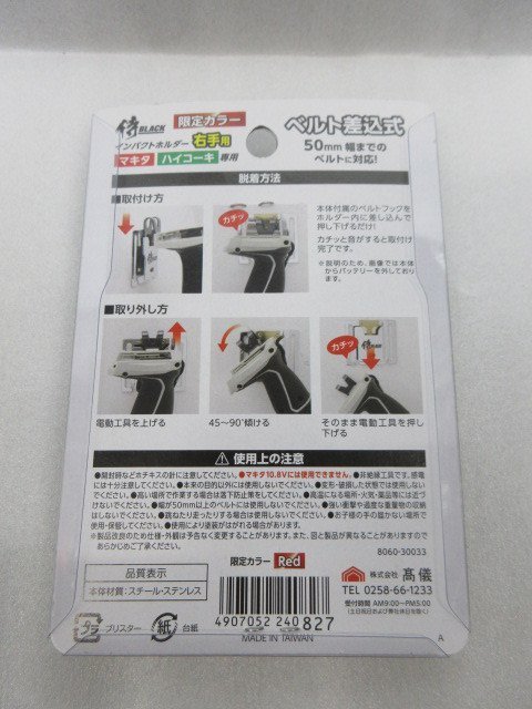 限定カラー 侍ブラック 侍BLACK マキタ ハイコーキ専用 インパクトホルダー 右手用 30033 レッド |