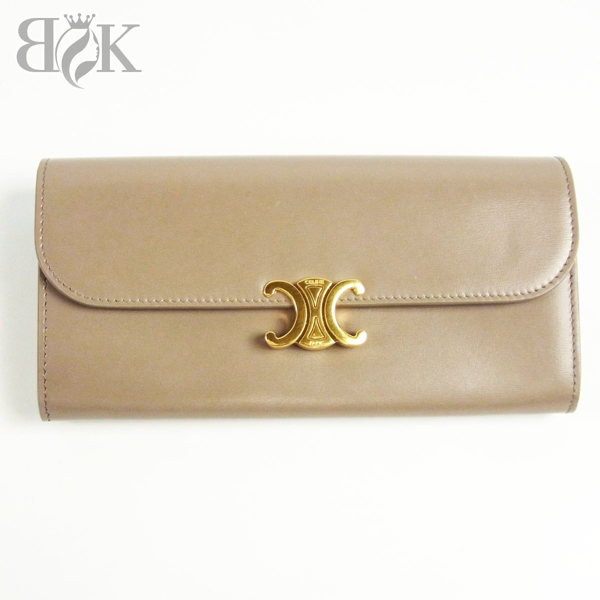 商品名 | トリオンフ ラージウォレット レディース 二つ折り長財布 ぺブル グレーベージュ シャイニーカーフスキン |