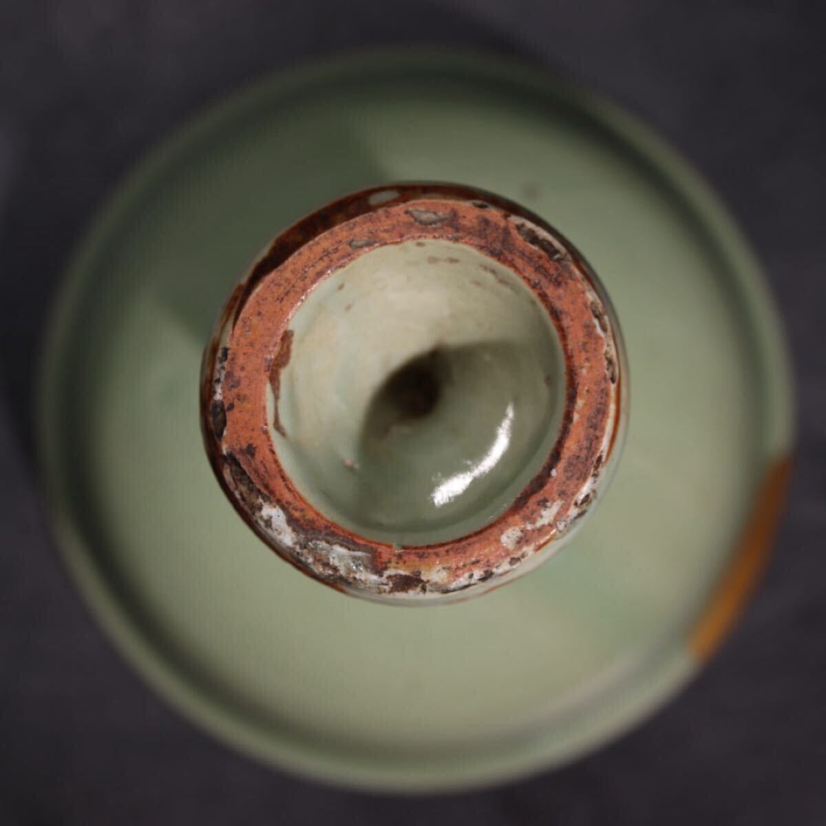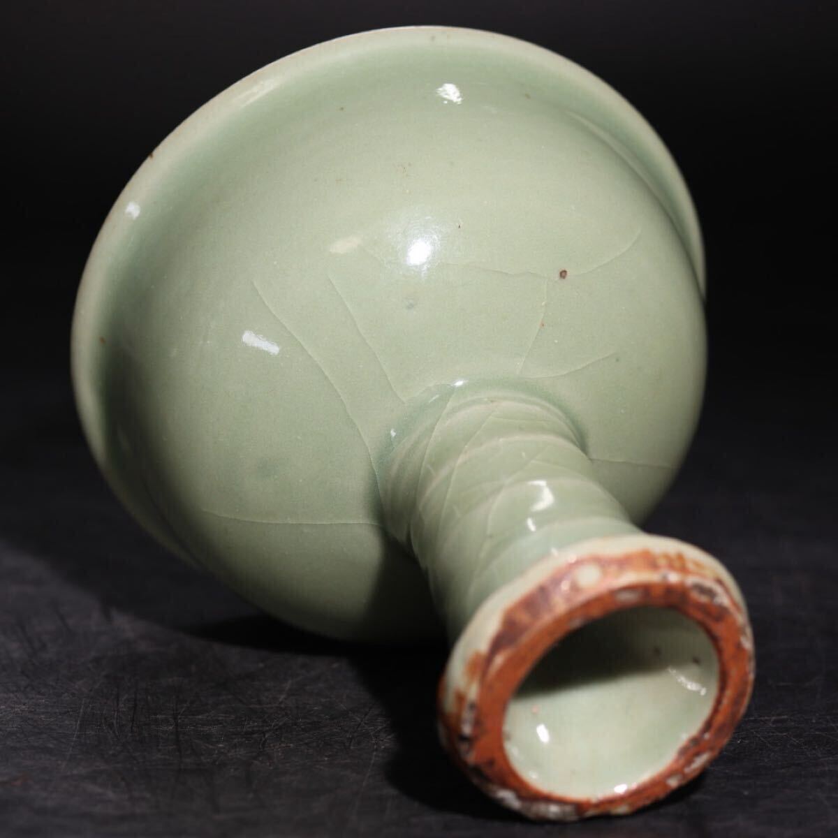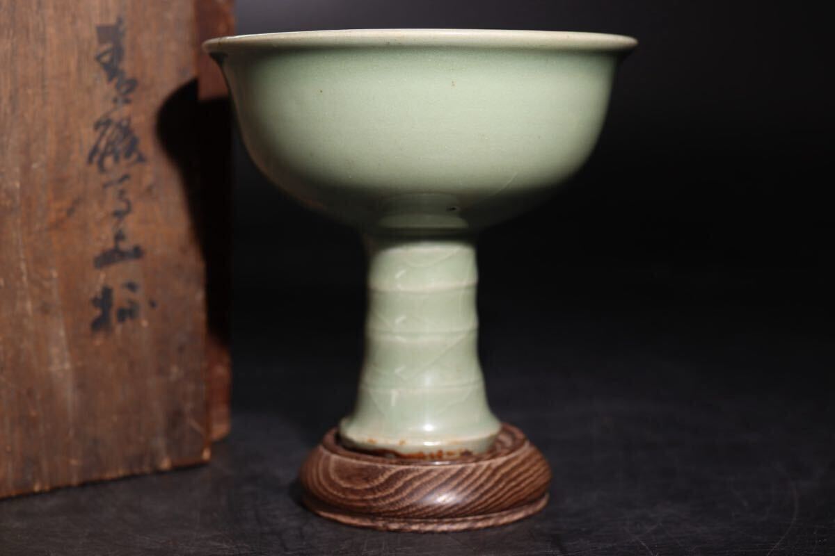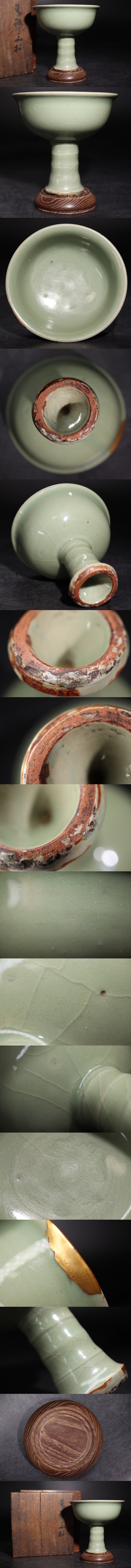 | 時代 青磁 高足杯 金継ぎ 台座 木箱付 / 中国美術 酒器 酒杯 盃 茶器 煎茶道具 検索: 龍泉窯 天龍寺 .G2767 |