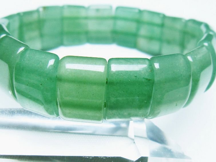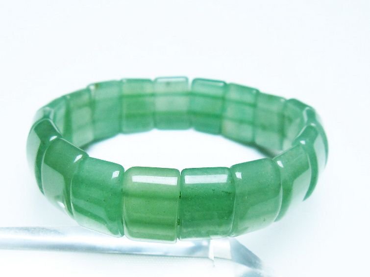 ■商品名: インド翡翠バングル ■商品ID: T379-3645 ■商品重量:約 34g ■商品サイズ: 高約:15mm 横約:10mm 厚約:6mm 内径円周約:162mm(±5mm) 【インド翡翠(アベンチュリン)】 エメラルドや翡翠と同じ5月の誕生石です。 アベンチュリンは雲母やヘマタイト、ゲーサイトを内包することによって粒子状にキラキラと輝くアベンチュレッセンス(アベンチュリン効果)を持つ鉱物全般を指し、「インド翡翠」は翡翠ではなくグリーンアベンチュリンの別称です。 インドではアベンチュリンの資源が豊富でグリーンアベンチュリンが翡翠の代用品として用いられていたことからこの名で呼ばれるようになりました。 アベンチュリンは洞察力や本質を見極める力を与えてくれます。 また、マイナスの感情を静めて円滑なコミュニケーションを促してくれる効果もあるとされますので、人間関係で悩みがちな方やリーダーシップを発揮する立場でストレスを抱え込んでしまうという方におすすめの石です。 ⇒ インド翡翠(アベンチュリン)をもっと詳しく ◆ワンポイント情報 一般的にアベンチュリンというと緑色のグリーンアベンチュリンを指す場合がほんとんどですが、内包物の種類によって赤色~ピンク、白色や青色など様々な色合いが存在します。 |