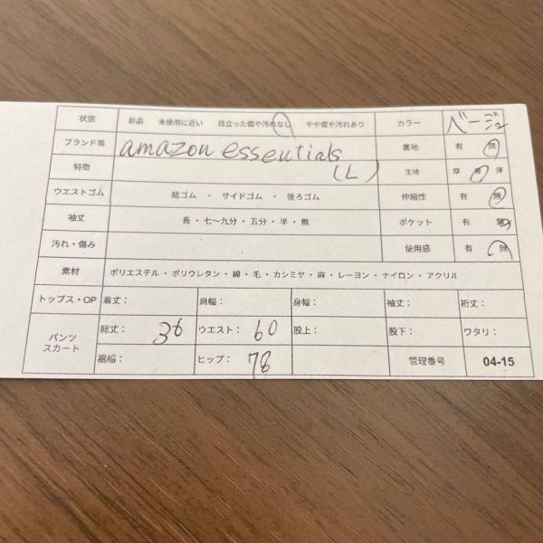 カジュアルにもきれいめにも◎ Amazon Essentials ベージュプリーツスカート - ブランド:Amazon Essentials - サイズ表記:L - 素材:コットン・ポリエステル混 - カラー:ベージュ - シーズン:春夏 - 服の特徴:プリーツ入りデザイン、フロントボタン付き、台形シルエット 管理番号: 04-15 即購入大歓迎・お得な割引各種あります 詳しくはプロフィールをご覧ください! 匿名&送料無料 海外輸入のため全て一点ものです 古着のため使用感・毛玉等があることもあります。写真で状態の確認を行なってからご購入ください おまとめ買いでお得な割引あります♪ 平置き採寸表→写真から確認いただけます! (素人採寸のため、多少の誤差はご了承ください) 商品状態に関しては、写真、商品説明欄に記載しております。着用回数、購入時期などはお答えできませんので、ご了承ください。着画、写真の追加もお断りしております。 簡易包装のコンパクト発送となります。 畳みシワはご了承の程、宜しくお願いいたします。 商品によっては圧縮してお送りするものもございます。 撮影環境や使用するモニター、反映されにくい色味など、 商品と画像に若干の色誤差が生じますことをご了承ください。 出品作業の際にしっかりと確認はしておりますが、シミなどの見落としがある場合もございますのでご了承下さい。 古着の取り扱いになりますので特有の匂い等がある可能性があります。ご理解のある方のみご購入の程お願い致します。