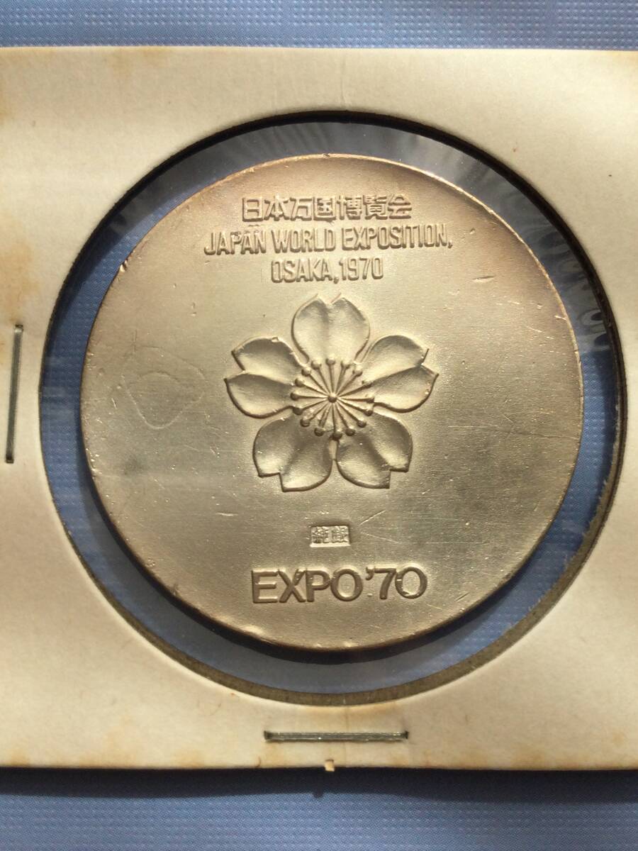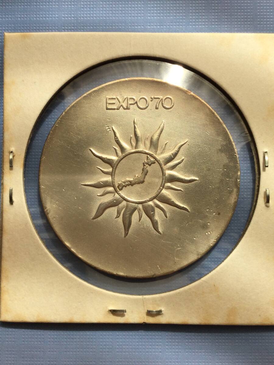 大体の大きさは直径3.4㎝です。また重さは約20gです。純銀の刻印があり、この太陽のようなデザインのメダルは珍しいと思います。今年の大阪万博ももう終わりますが、これを記念にゲットされたらいかがでしょうか。気に入られましたらどうぞよろしくご入札下さい。