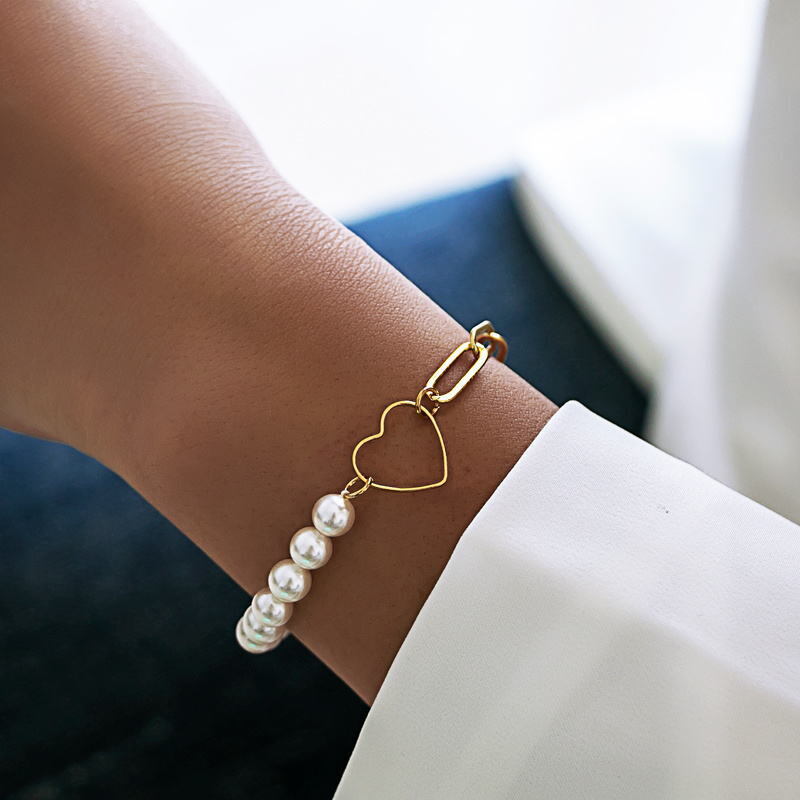 オープンなハート★イミテーションパールステンレス チェーンブレスレット★k18色