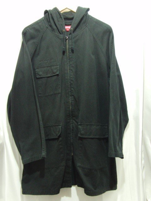 SUPREME Twill Zip Parka モッズコートです。 正面右ポケットの縫い目が解けております。 また、右後ろ上部(袖に近い部分)にシミが見られます。 全体的に使用感がございます。 |