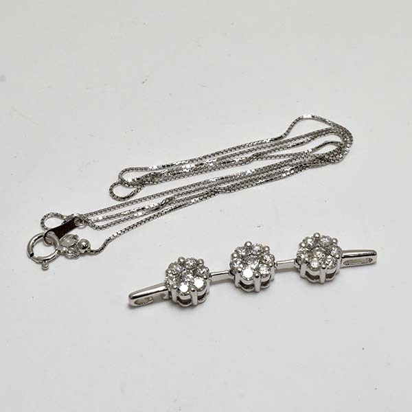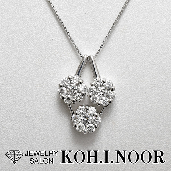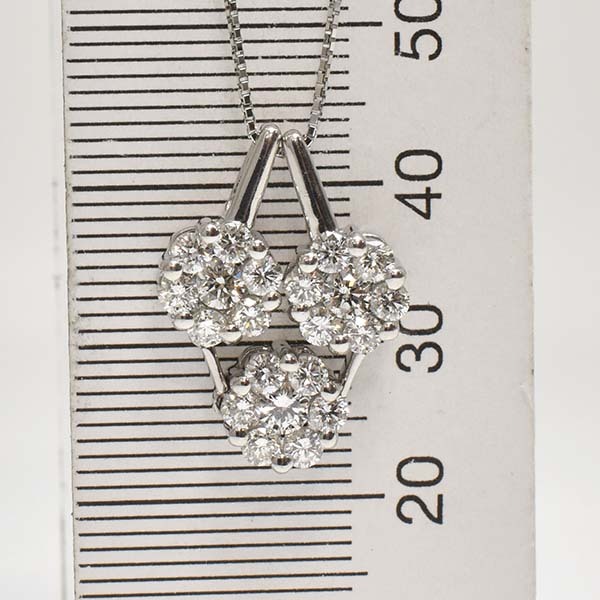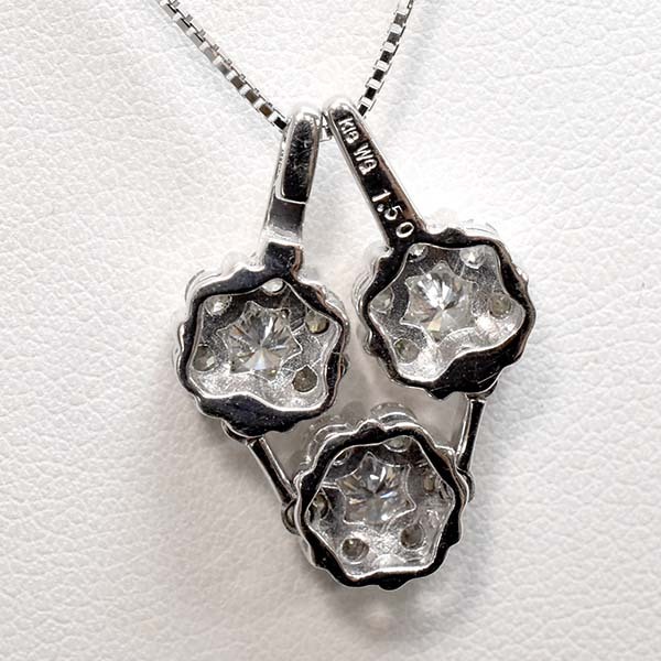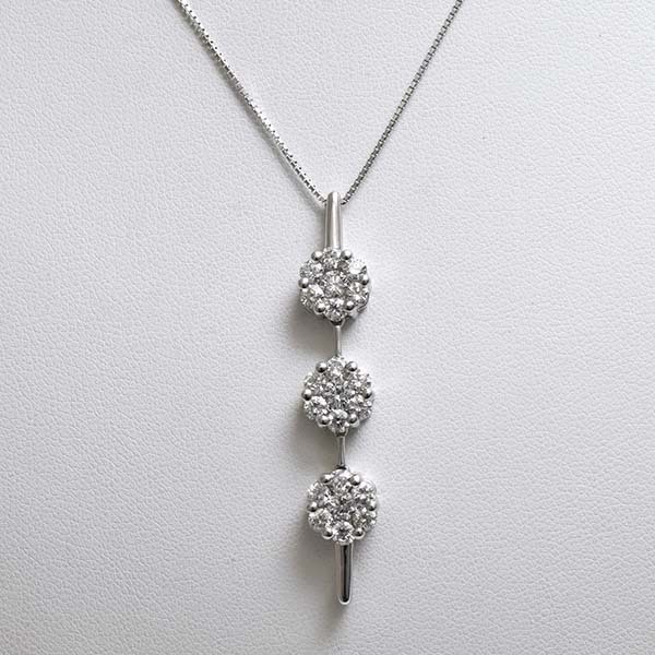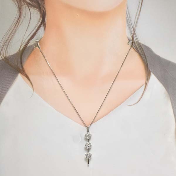 3つのフラワーモチーフをバーでつなぐ18金ホワイトゴールド製の2WAYネックレス。