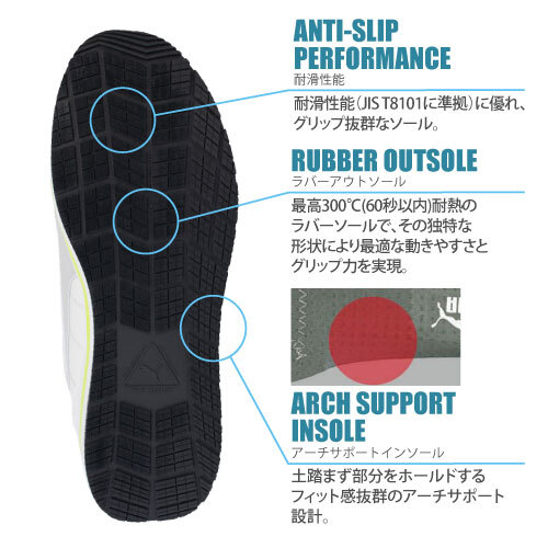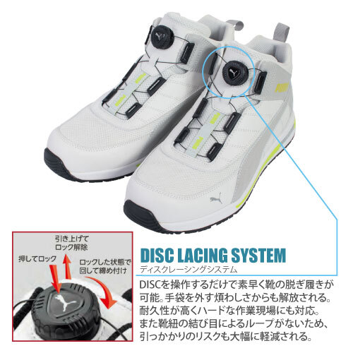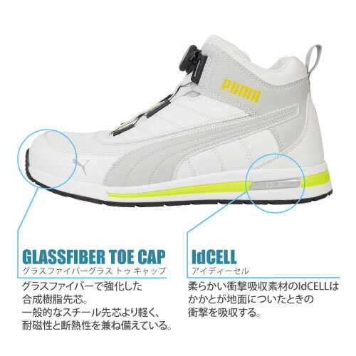 PUMA プーマ 安全靴 ミッドカット【 63.213.0】スイッチバック ディスクミッド セーフティスニーカー ダイヤルタイプ ■26.5cm■ホワイト色