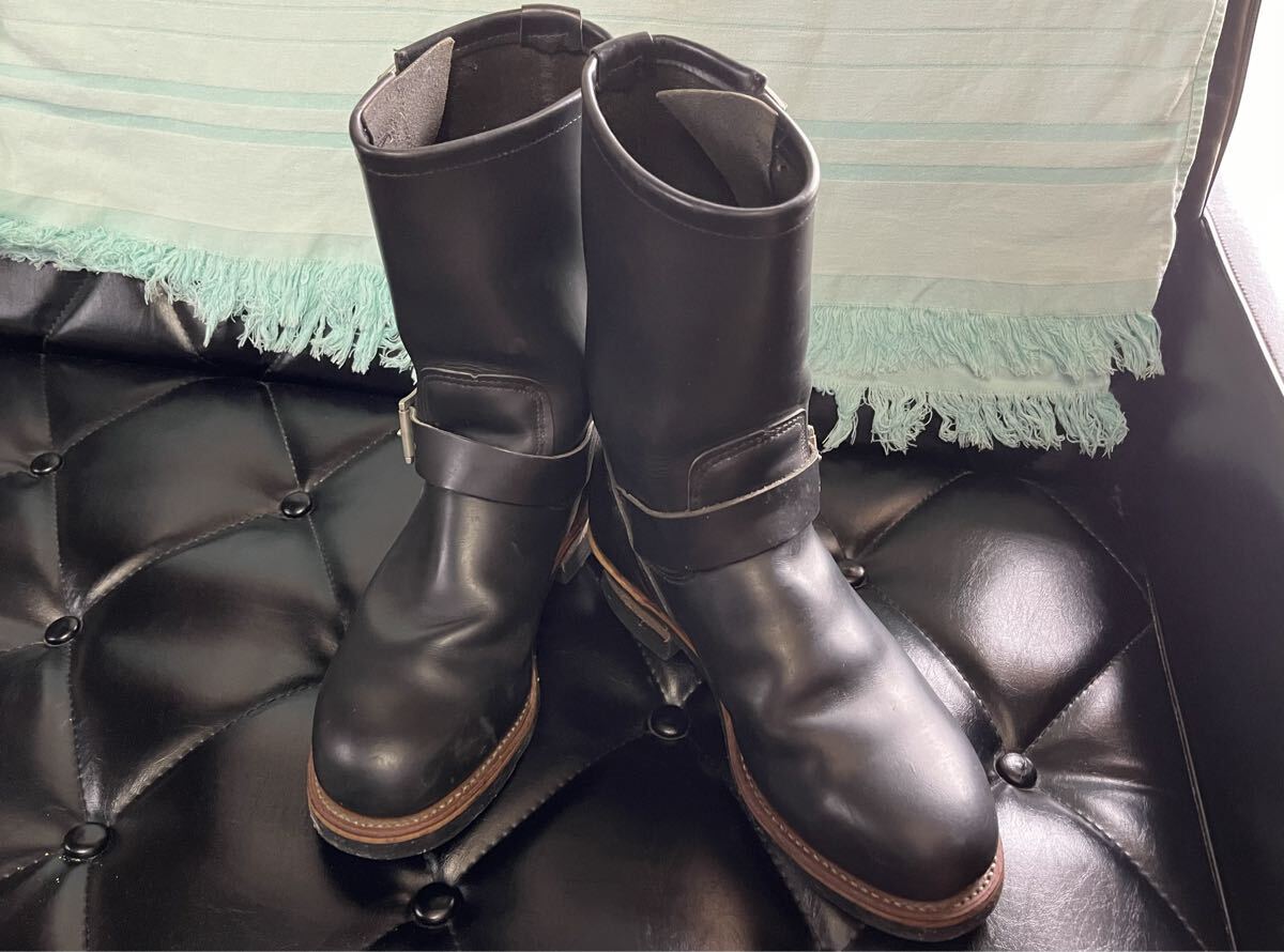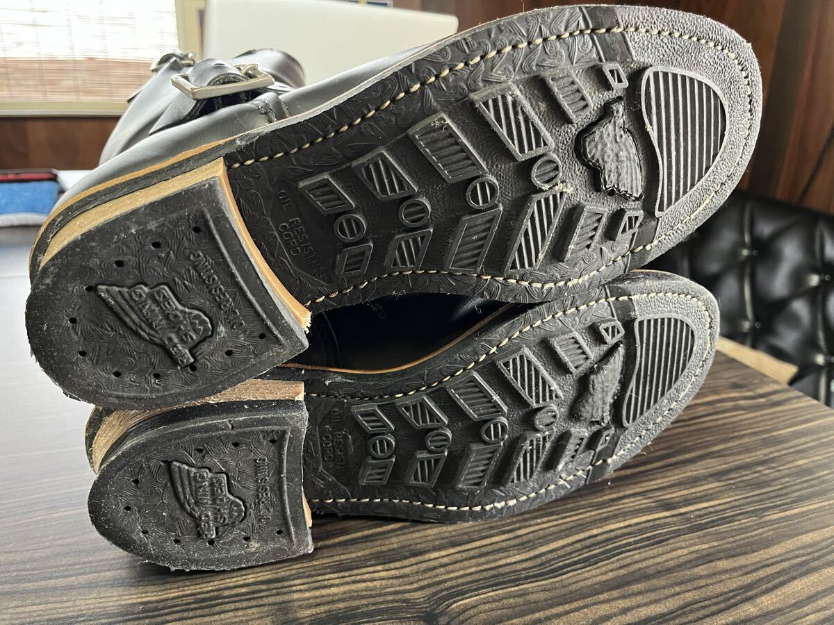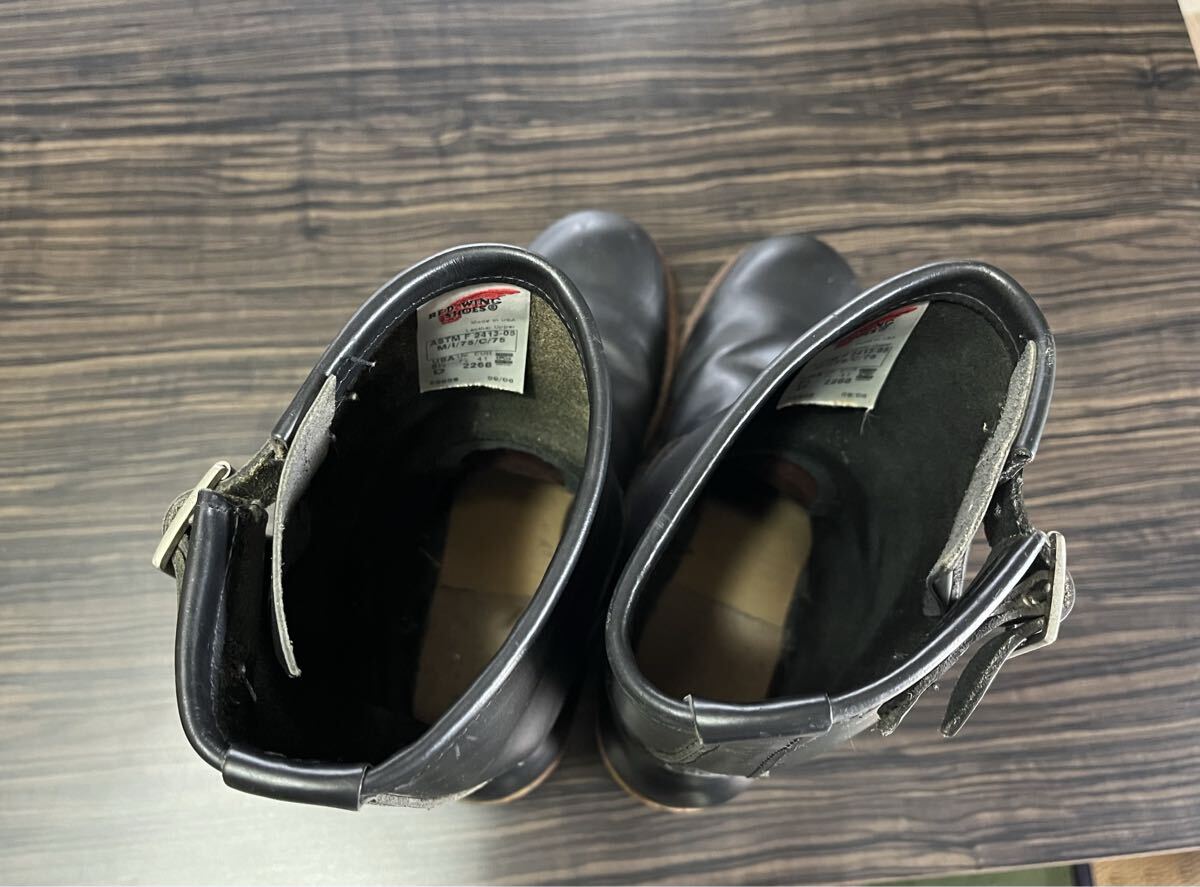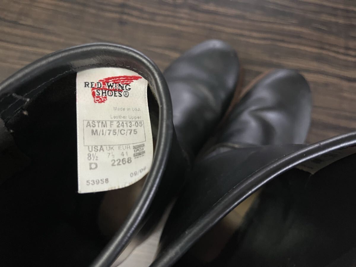 RED WING 美品 アメリカ製 ♯2268 D 8 1/2 プリント 羽タグ レザー エンジニア ブーツ 黒 ブラック 8.5 D レッドウィング