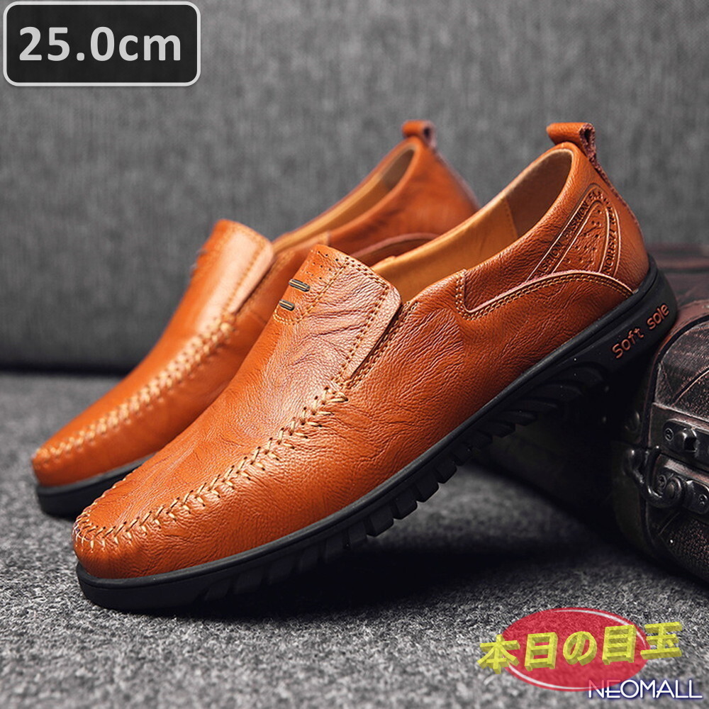 1円~ ☆ メンズ ビジネス 牛皮 シューズ ブラウン サイズ 25.0cm 革靴 靴 カジュアル 屈曲性 通勤 軽量 【625】