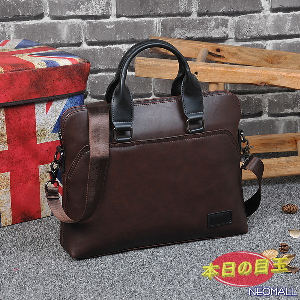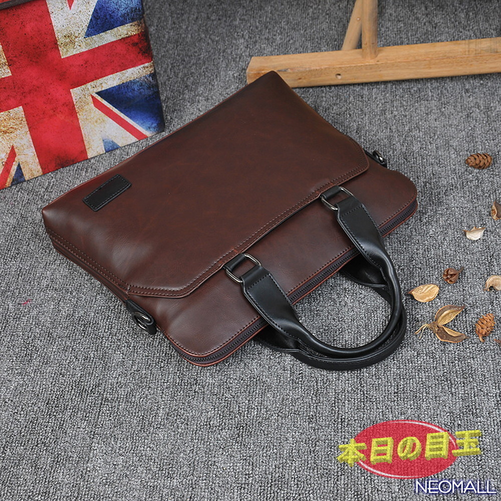 1円~ 新品 メンズ 高級PUレザー ビジネスバッグ【582】ブラウン ブリーフケース ショルダー スクエア 横型 大人気 上質 質感◎ 未使用