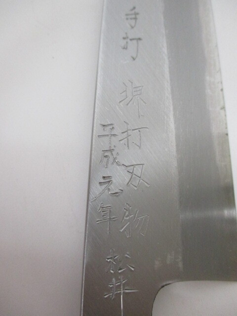 商品説明 | ◆頂き物で商品について詳しくは分かりません。 ◆サイズ 全長約293.mm×刃渡り約155mm 重さ約2390g ◆名前の刻印があります。 未使用品です。 ◆画像の物が全てです。 よくご確認の上、ご入札お願いします。 | |