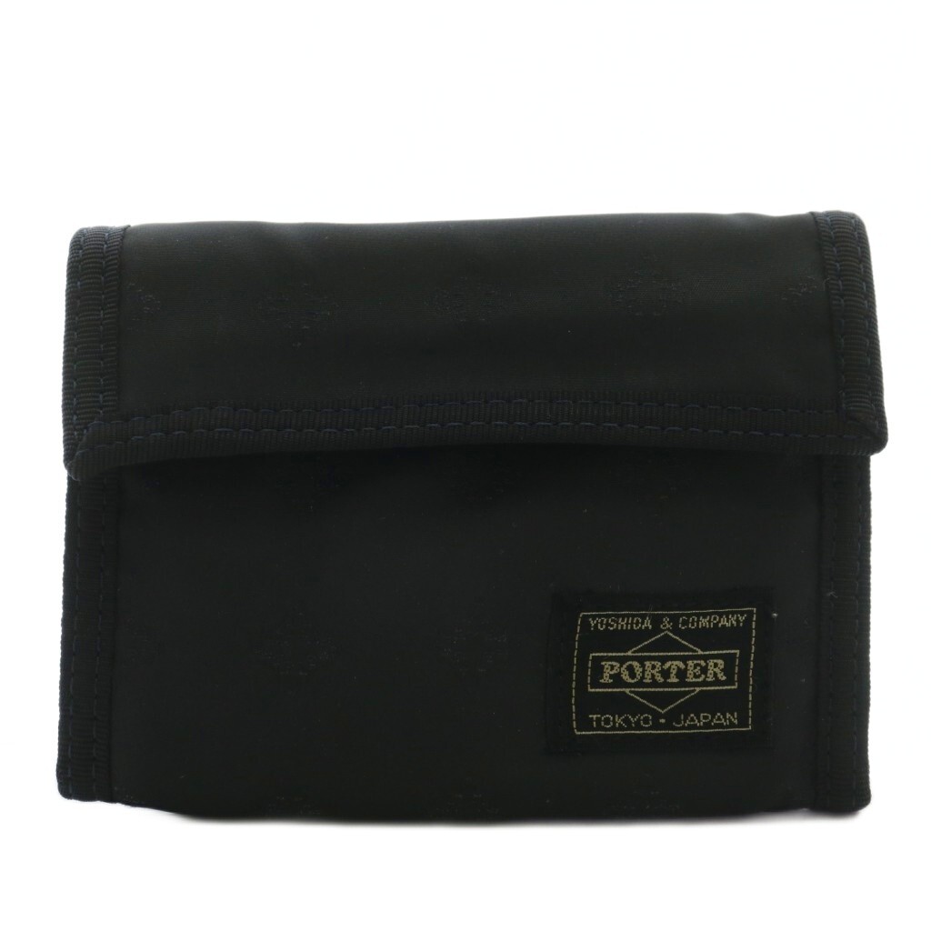 ポーター PORTER 吉田カバン ブラックパターン 財布 二つ折り ナイロン 総柄 ロゴ 黒 ブラック /XZ ■GY18 メンズ