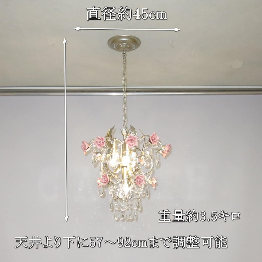 商品説明 | ![]() 【LED付き!】新品 可愛いデザイン 薔薇モチーフ LED 4灯 クリスタル シャンデリア ☆広角LED電球4灯(¥4800-相当)をお付けさせて頂き驚きのプライス! 【LED付き!】新品 可愛いデザイン 薔薇モチーフ LED 4灯 クリスタル シャンデリア ☆広角LED電球4灯(¥4800-相当)をお付けさせて頂き驚きのプライス! ☆シャンデリア本体の金属部分はシャンパンゴールドベースで飾り部分の材質はセラミック製の花びらにクリスタルガラスを使用した豪華なシャンデリアです ☆シャンデリア本体は調光にも対応しております ※調光が必要の場合、調光対応LED1個別途¥200-と汎用調光器(Panasonic製LED用調光器推奨)が必要です ☆付属電球・・・口金E17 広角LED 白色又は暖色(明るさ40ワット消費電力4ワット 暖色110Lm/W・白色130Lm/W) ☆ご希望のLED電球をお申し付けください ※調光対応LED1個別途¥200- ☆取り付けに関しましてはワンタッチでは御座いませんが(配線はワンタッチ)引掛けシーリングに対応しております ☆可愛いデザイン照明 新品 薔薇モチーフ4灯クリスタルシャンデリア シーリングタイプを是非この機会に! サイズ・・・直径約45cm 天井より下に約57~92cmまで調整可能 重量約3.5キロ ※92cm以上必要の場合はお申し付けください ![]() |