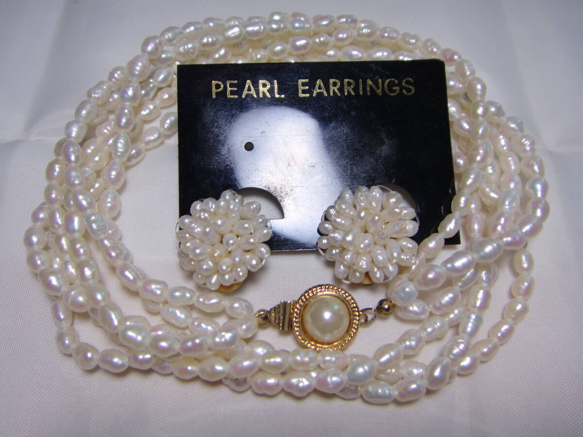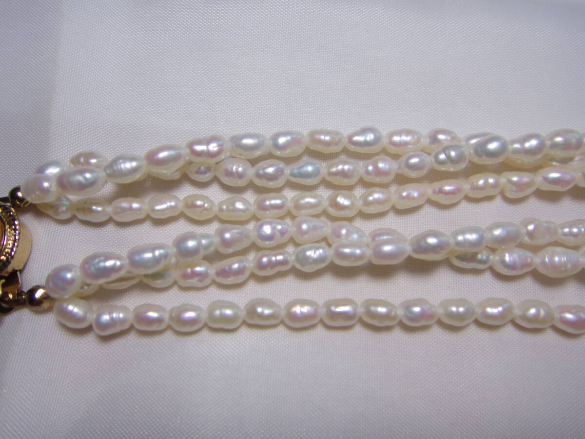 本真珠 本パール 淡水パール 3連ネックレス&イヤリング 2点セット ヴィンテージ Y813