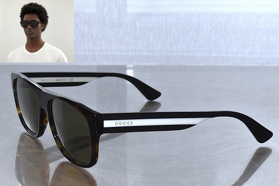 テンプルにシェリーラインを施す特徴があり、ブランドの象徴的なディテールを感じさせる【GG0341S 】モデルのサングラスです。