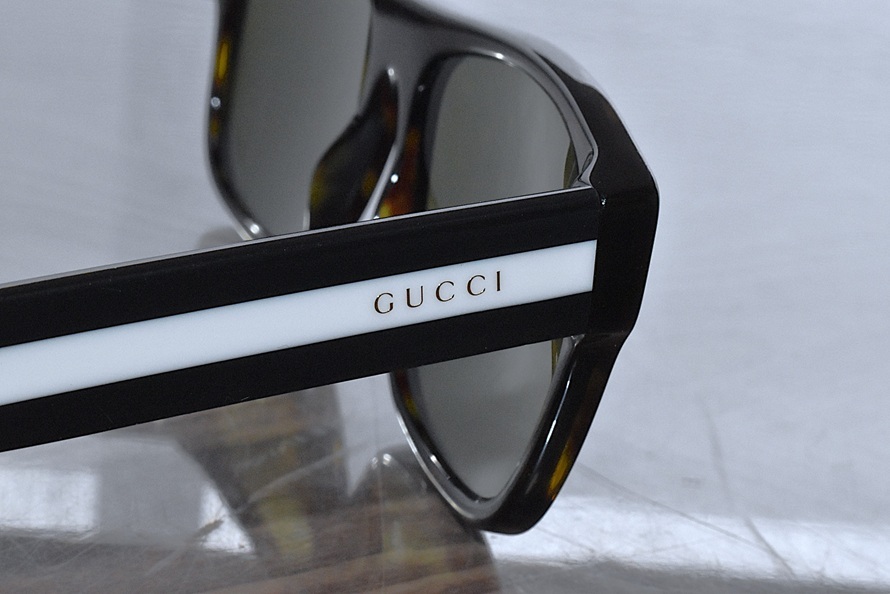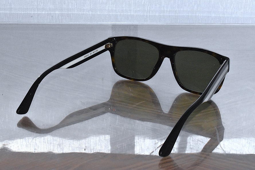 GUCCI グッチ シェリーライン / ウェブライン レクタングラー × ウェリントン サングラス【フレーム(ブラック×ブラウン系べっ甲調)/レンズ(ブラックグリーン系) / 型番GG0341S 003】若干訳ありです。