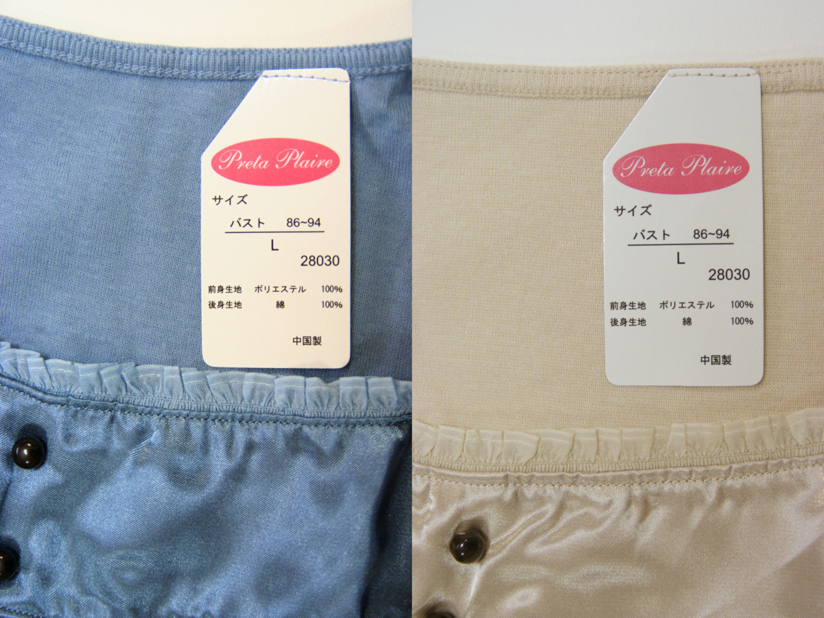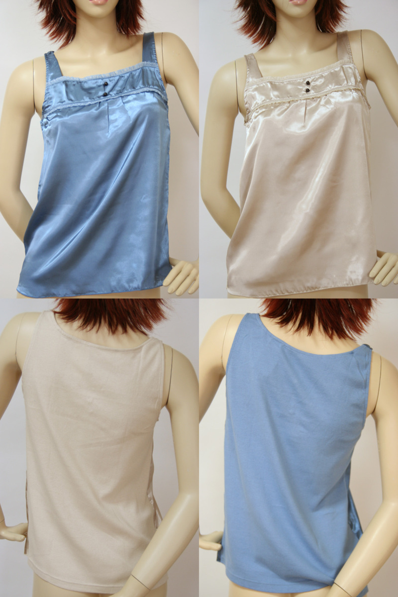 ・こちらの出品は、同デザイン・色違いのラン型サテンキャミソール2色組(ペールブルー&シャンパンベージュ)です。